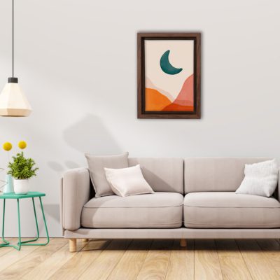 Boho Art – Botanical Boho Style Floating Canvas Minimalist Wall Art With Black and Orange Colors – Art Model No – Single Frame – bohoart-1f-30-a