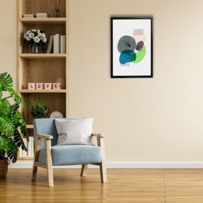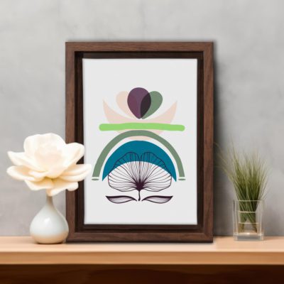 Boho Art – Botanical Boho Style Floating Canvas Minimalist Wall Art With Blue and Green Colors – Art Model No – Single Frame – bohoart-1f-23-b