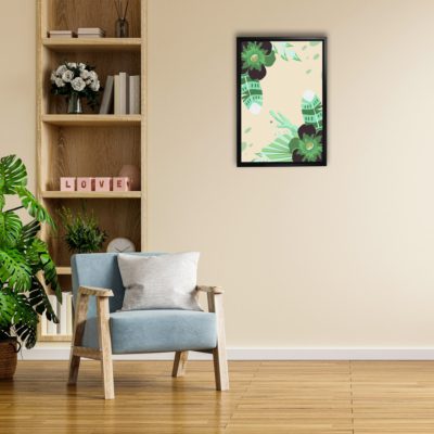 Boho Art – Botanical Boho Art Bohemian Style Floating Canvas Wall Art With Green and Beige Colors – Art Model No – Single Frame – bohoart-1f-26-a