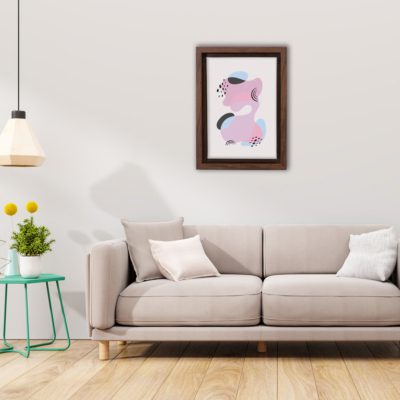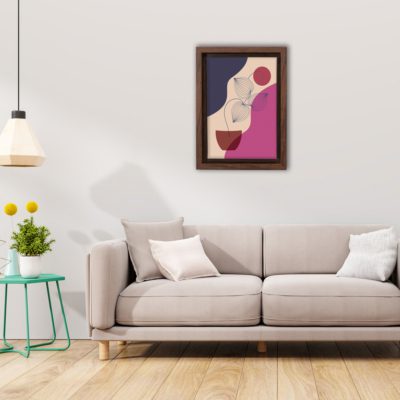 Boho Art – Botanical Boho Style Floating Canvas Minimalist Wall Art With Pink and Blue Colors – Art Model No – Single Frame – bohoart-1f-22-c