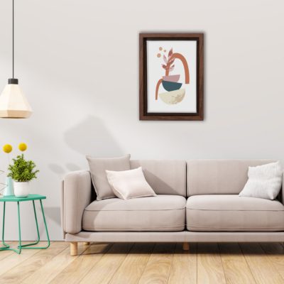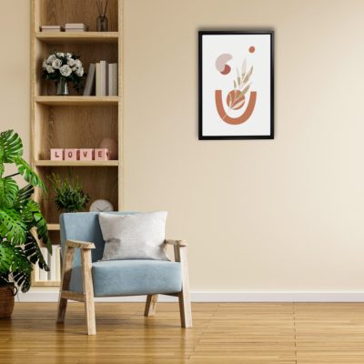 Boho Art – Tropical Leaves and Shapes Boho Minimalist Art Bohemian Style Floating Canvas Wall Art With Orange and Beige Colors – Art Model No – Single Frame – bohoart-1f-15-a