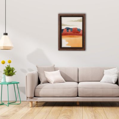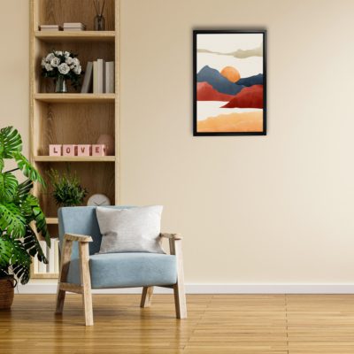Boho Art – Sun With Mountains Boho Style Floating Canvas Minimalist Wall Art With Red and Blue Colors – Art Model No – Single Frame – bohoart-1f-17-b