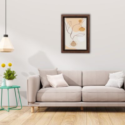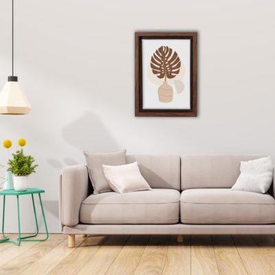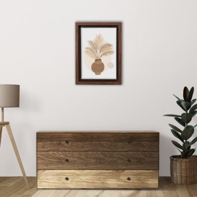 Boho Art – Tropical Leaves and Shapes Boho Style Floating Canvas Wall Art With Brown and Beige Colors – Art Model No – Single Frame – bohoart-1f-16-b