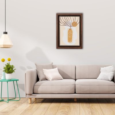 Boho Art – Tropical Leaves and Shapes Boho Minimalist Art Bohemian Style Floating Canvas Wall Art With Beige and Orange Colors – Art Model No – Single Frame – bohoart-1f-15-c