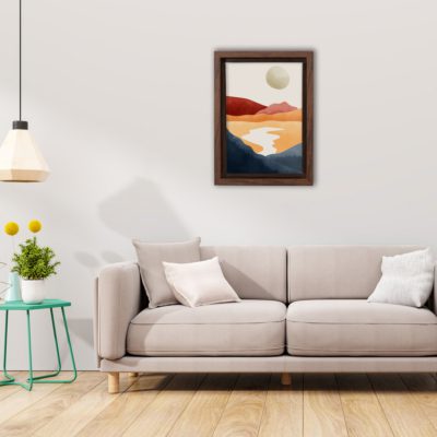 Boho Art – Sun With Mountains Boho Style Floating Canvas Minimalist Wall Art With Brown and Beige Colors – Art Model No – Single Frame – bohoart-1f-18-a