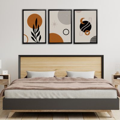 Boho Art – Tropical Leaves and Shapes Boho Minimalist Art Prints Set of 3 Bohemian Style Floating Canvas Wall Art With Black and Orange Colors – Art Model No – Three Frame – bohoart-3f-95
