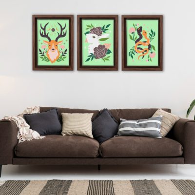 Boho Art – Botanical Boho Art Prints Set of 3 Bohemian Style Floating Canvas Wall Art With Orange and Green Colors – Art Model No – Three Frame – bohoart-3f-97