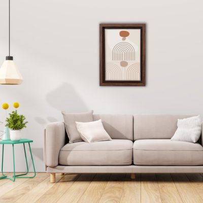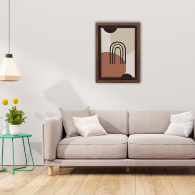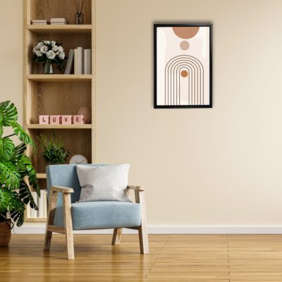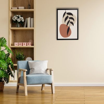 Boho Art – Tropical Leaves and Shapes Boho Minimalist Art Bohemian Style Floating Canvas Wall Art With Brown and Beige Colors – Art Model No – Single Frame – bohoart-1f-02-a