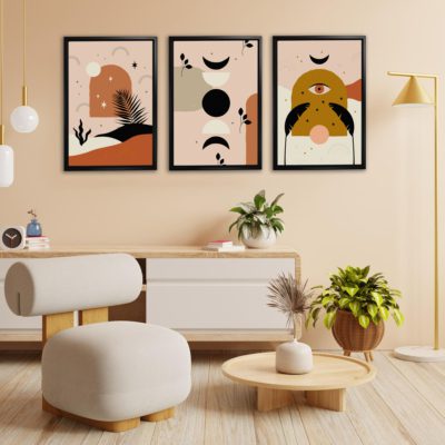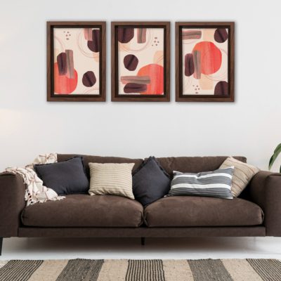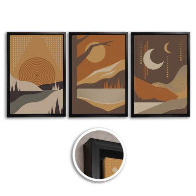 Boho Art – Mid Century Boho Style Floating Canvas Wall Art With Orange and Brown Colors – Art Model No – Three Frame – bohoart-3f-82