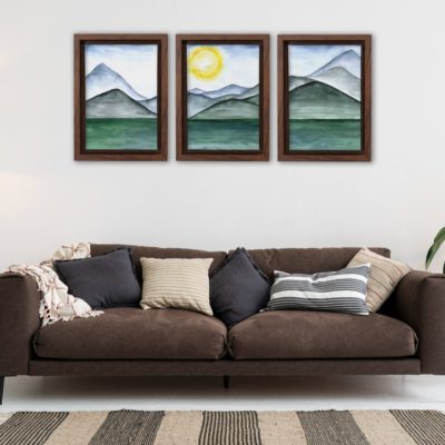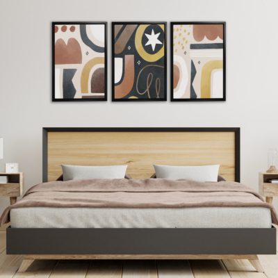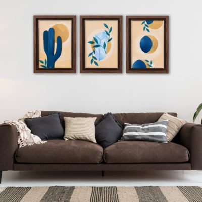 Boho Art – Mid Century Boho Style Floating Canvas Wall Art With Brown and Blue Colors – Art Model No – Three Frame – bohoart-3f-80