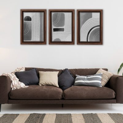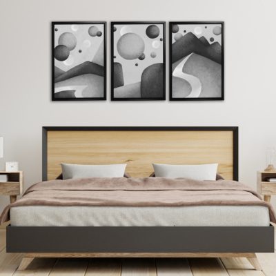 Boho Art – Mid Century Boho Style Floating Canvas Wall Art With Gray and White Colors – Art Model No – Three Frame – bohoart-3f-72