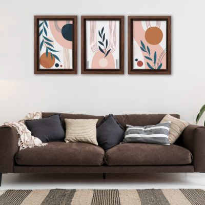 Boho Art – Botanical Style Floating Canvas Wall Art With Brown and Red Colors – Art Model No – Three Frame – bohoart-3f-74