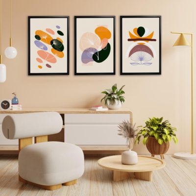 Boho Art – Botanical Style Floating Canvas Wall Art With Orange and Multi Colors – Art Model No – Three Frame – bohoart-3f-77