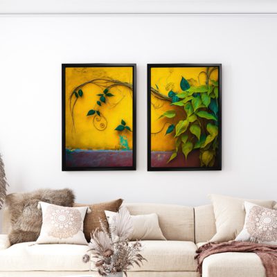 Nature Wall Creepers Art – Art Prints Set of 2 Style Floating Canvas Wall Art With Brown and White Colors- Art Model No- Two Frame – bohoart-2f-113