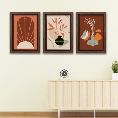 Boho Art – Botanical Style Floating Canvas Wall Art With Brown and Beige Colors – Art Model No – Three Frame – bohoart-3f-06
