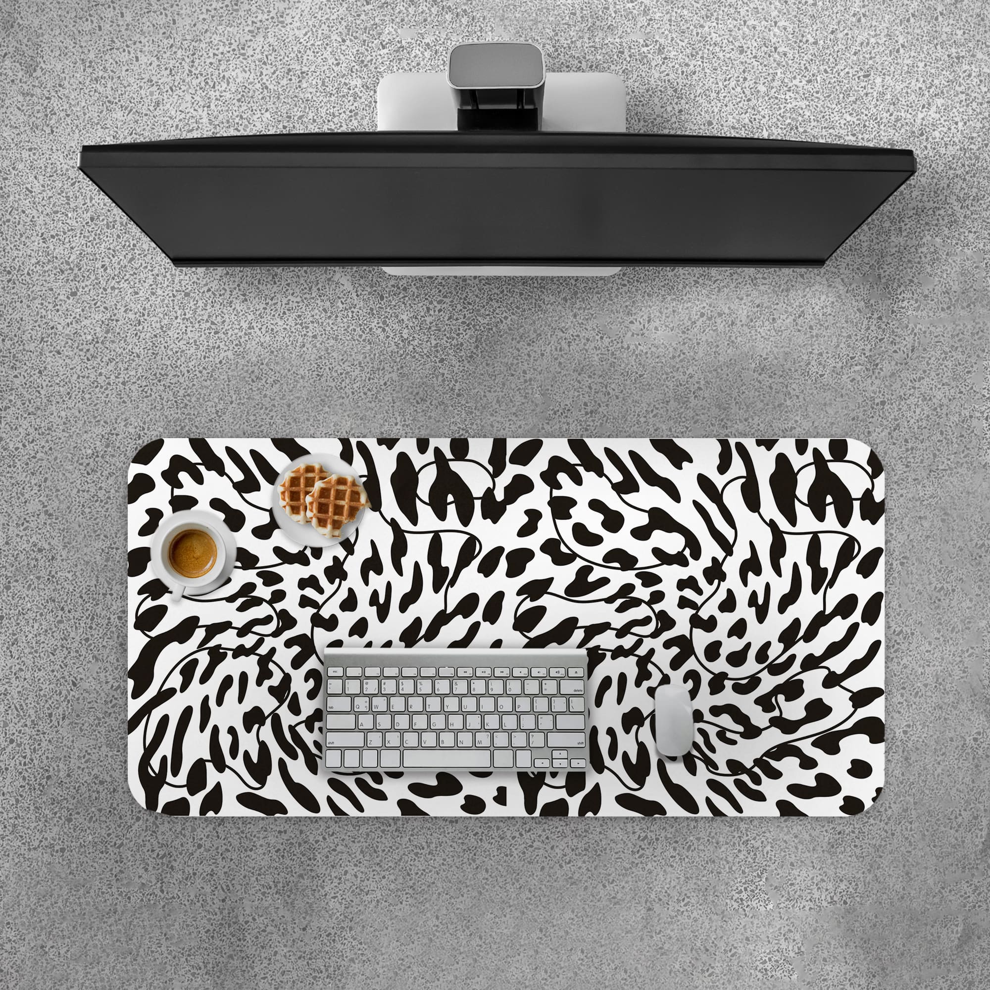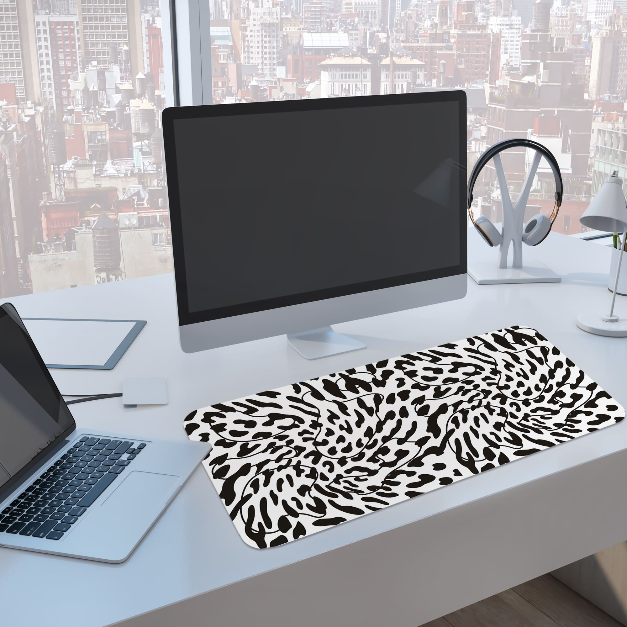 Give your workspace a bold artistic edge with this Abstract Animal Swirl Desk Pad. The design features flowing animal-inspired patterns twisted into a dynamic swirl formation, creating a unique and eye-catching monochrome look.