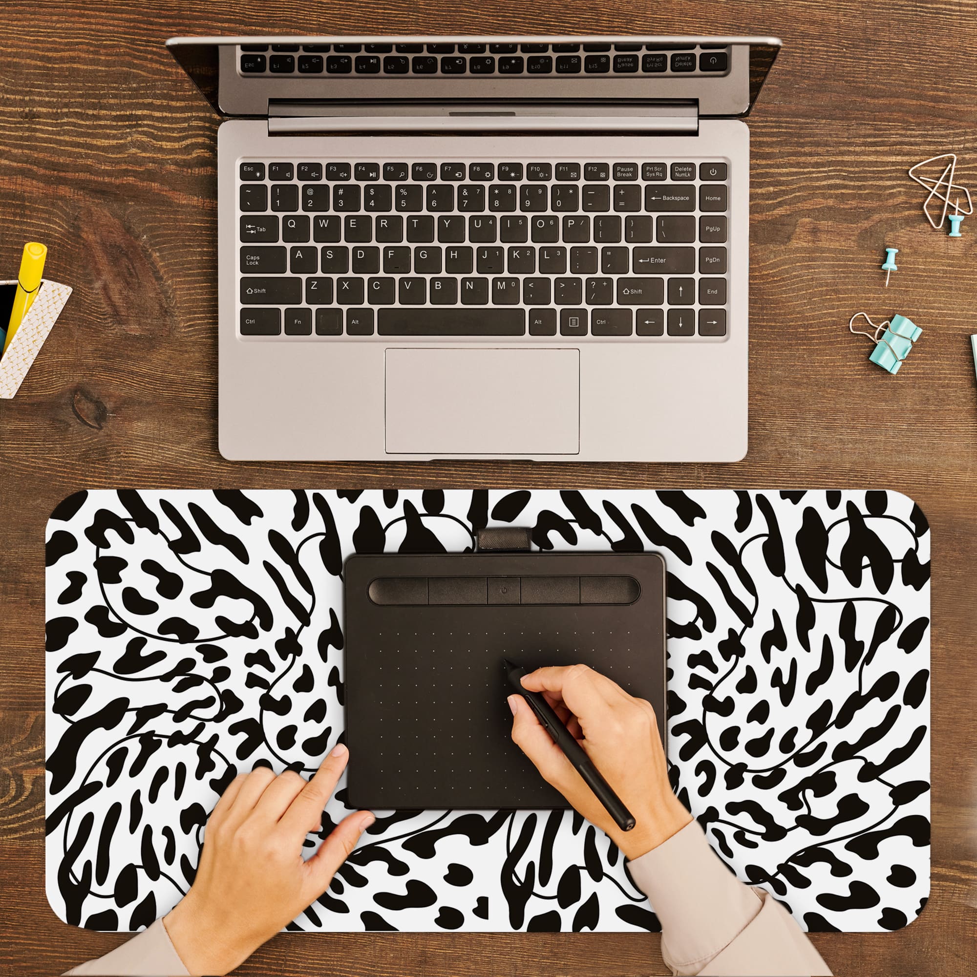 The extended surface provides a spacious and comfortable area for daily tasks, helping you stay organized while enhancing your desk with a modern and creative aesthetic. The swirling pattern adds movement and depth, making your setup stand out effortlessly.