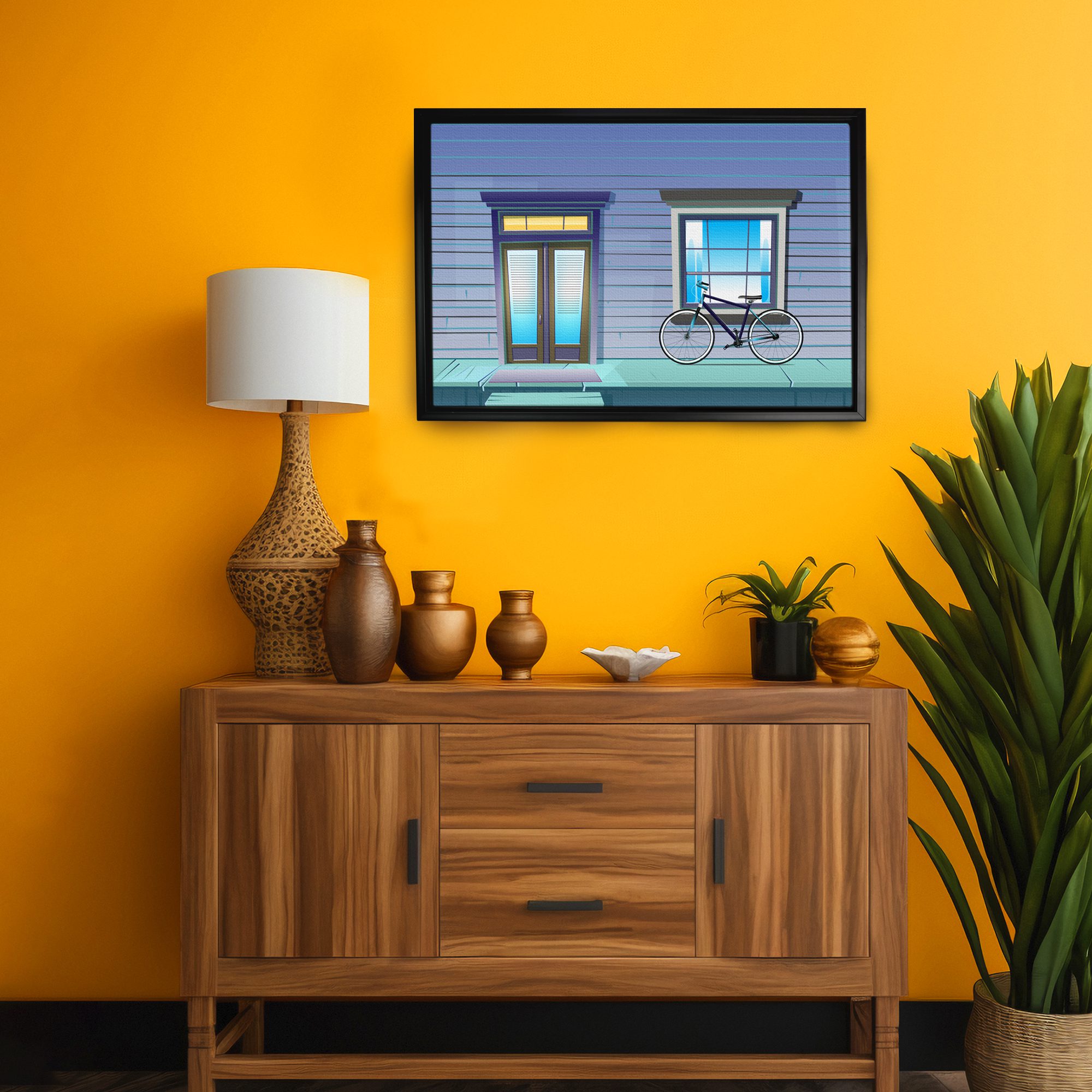 Cycle Wall Art utilizes floating frames to create the illusion of a canvas suspended within the picture frame, free from its edges. This effect is achieved through a unique combination of tension and adhesive, enabling the image to seamlessly wrap around the canvas, providing a distinctive visual charm to the artwork.