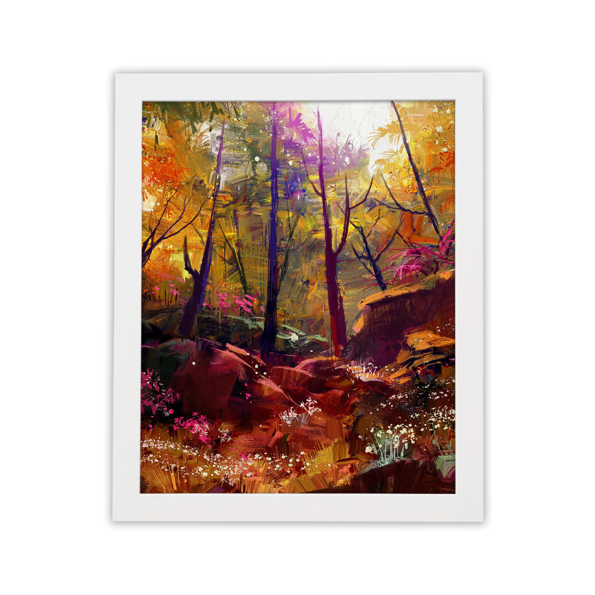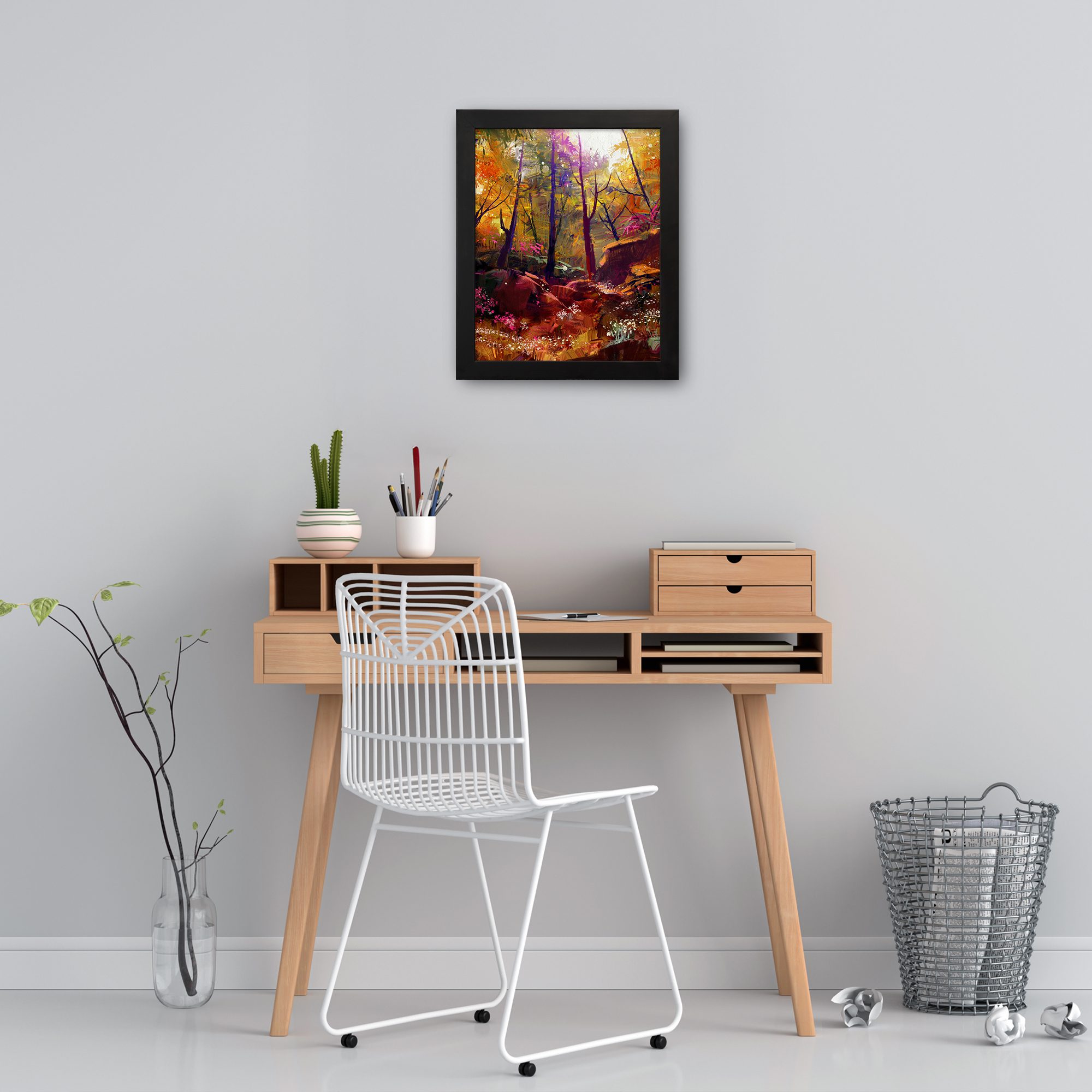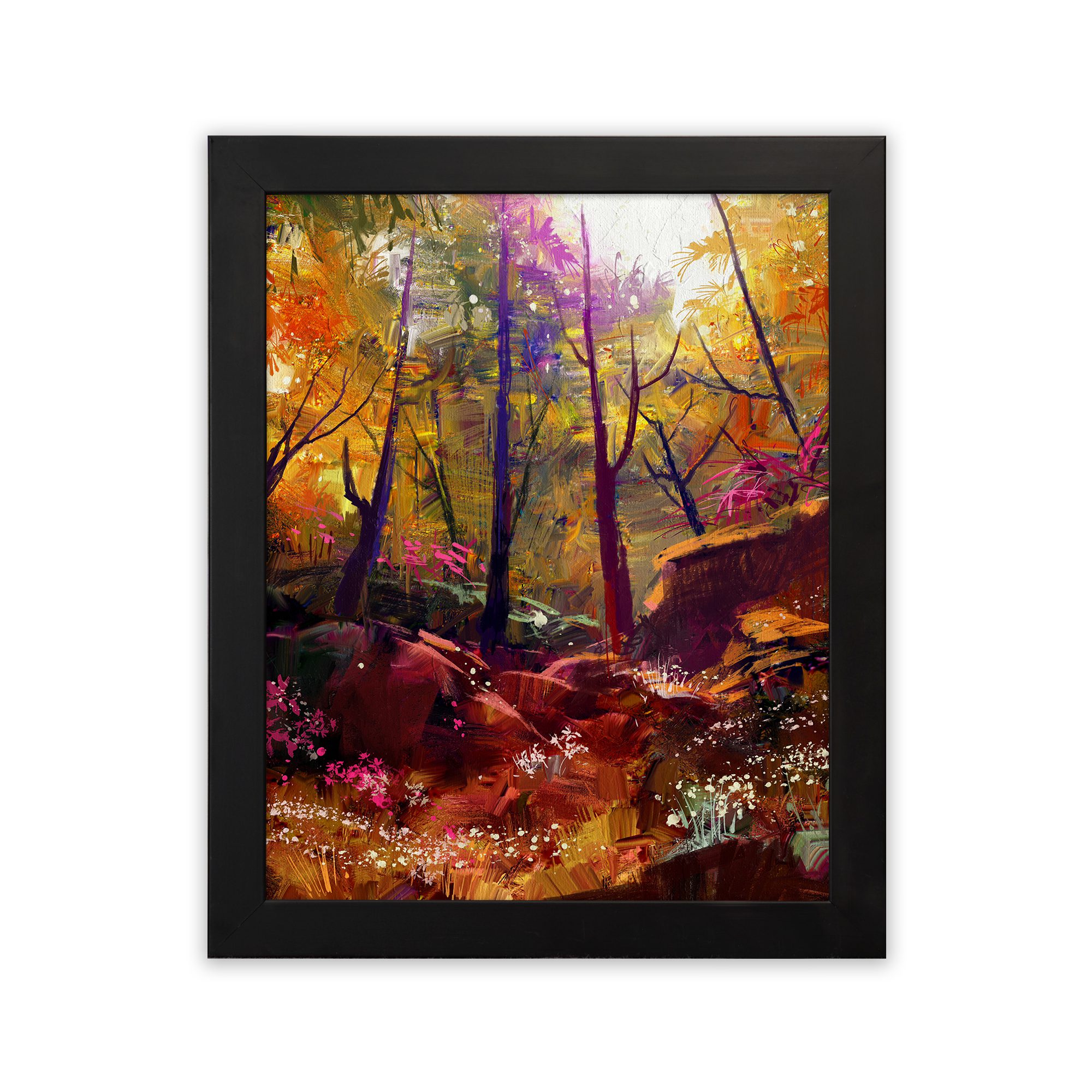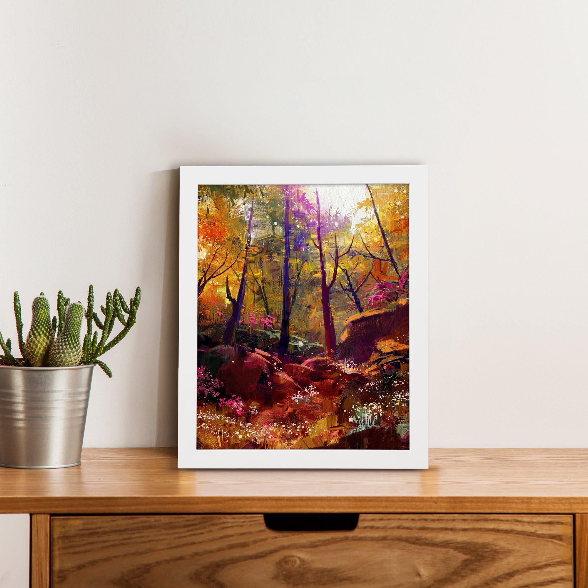 Bring rich colors and warmth into your space with this Autumn Forest Glow Wall Art. This artwork features a vibrant forest scene filled with tall trees, colorful foliage, and a glowing stream flowing through the landscape. The mix of warm autumn shades creates a cozy and lively atmosphere.