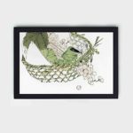 Elevate your decor with this exquisite vintage art print featuring a bountiful basket of grapes. Created by the renowned Kacho-ga artist Watanabe Seitei, this piece showcases the beauty and simplicity of nature.