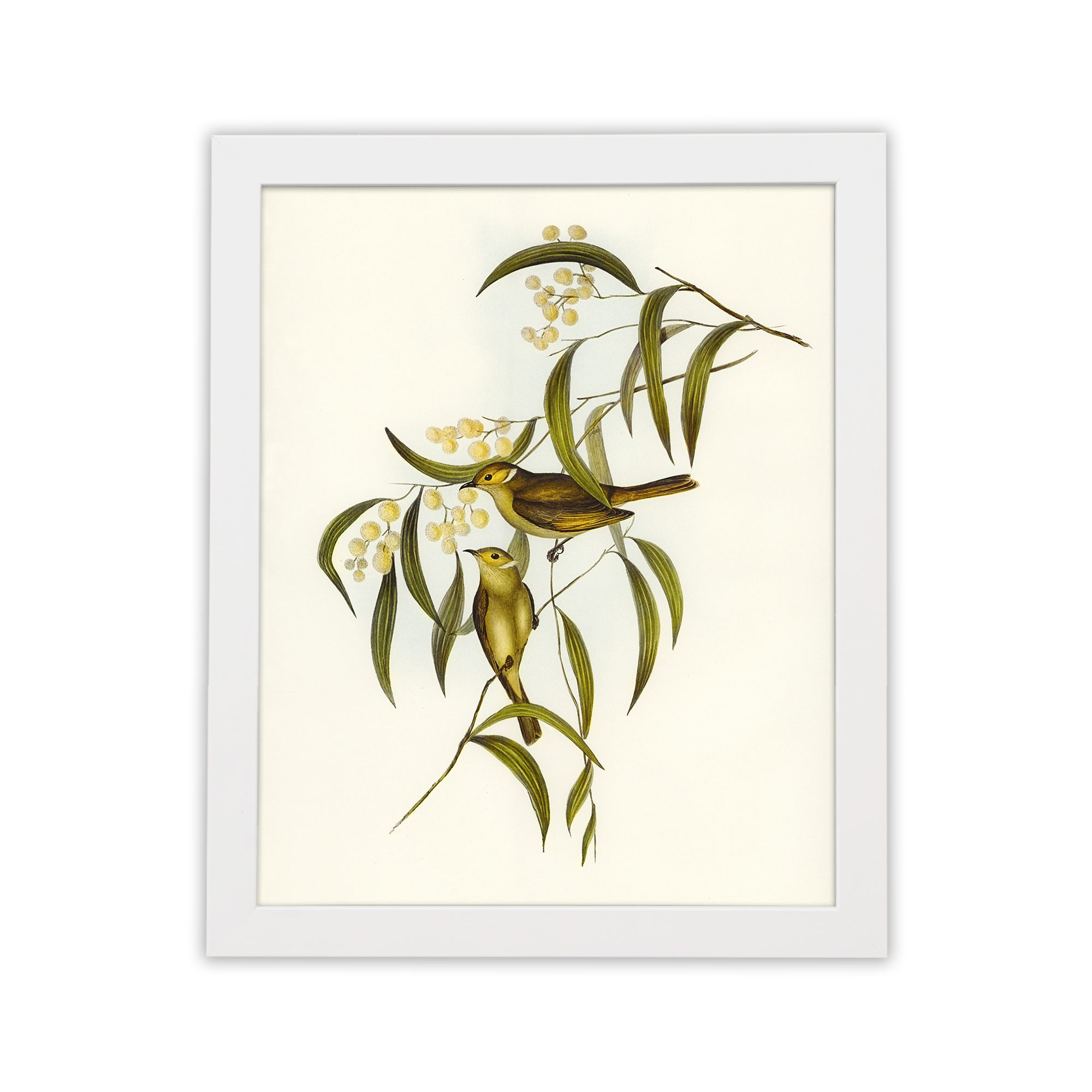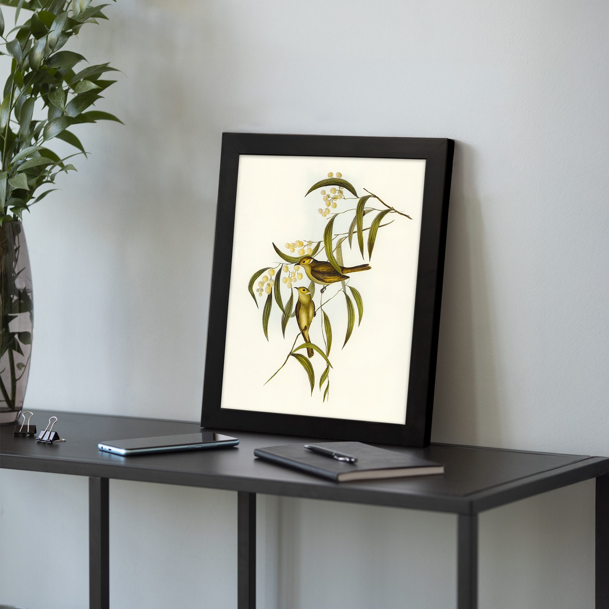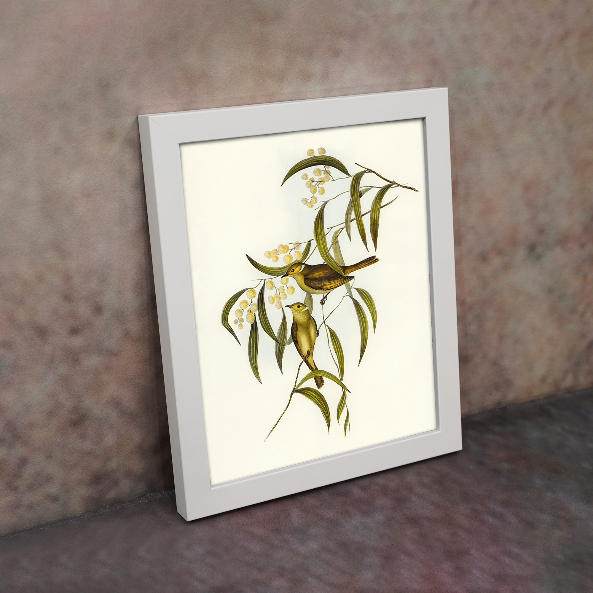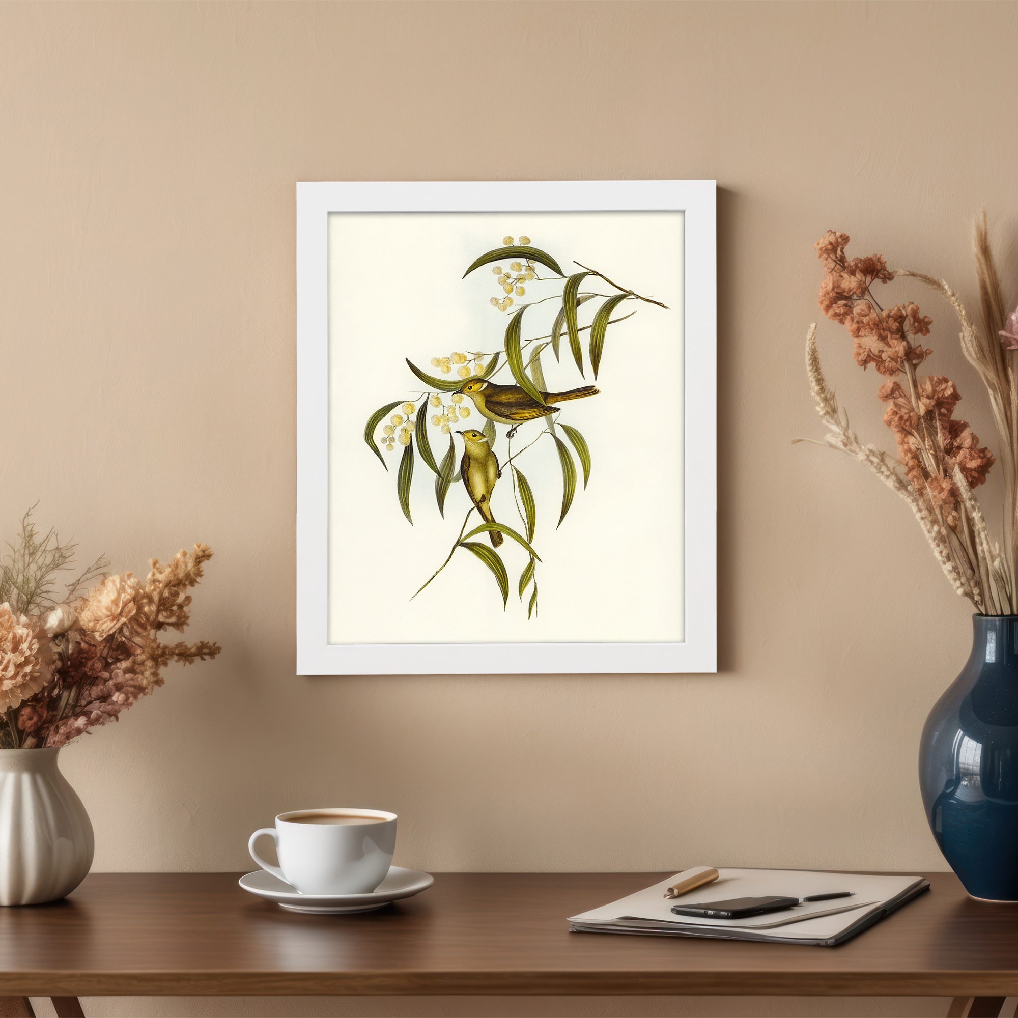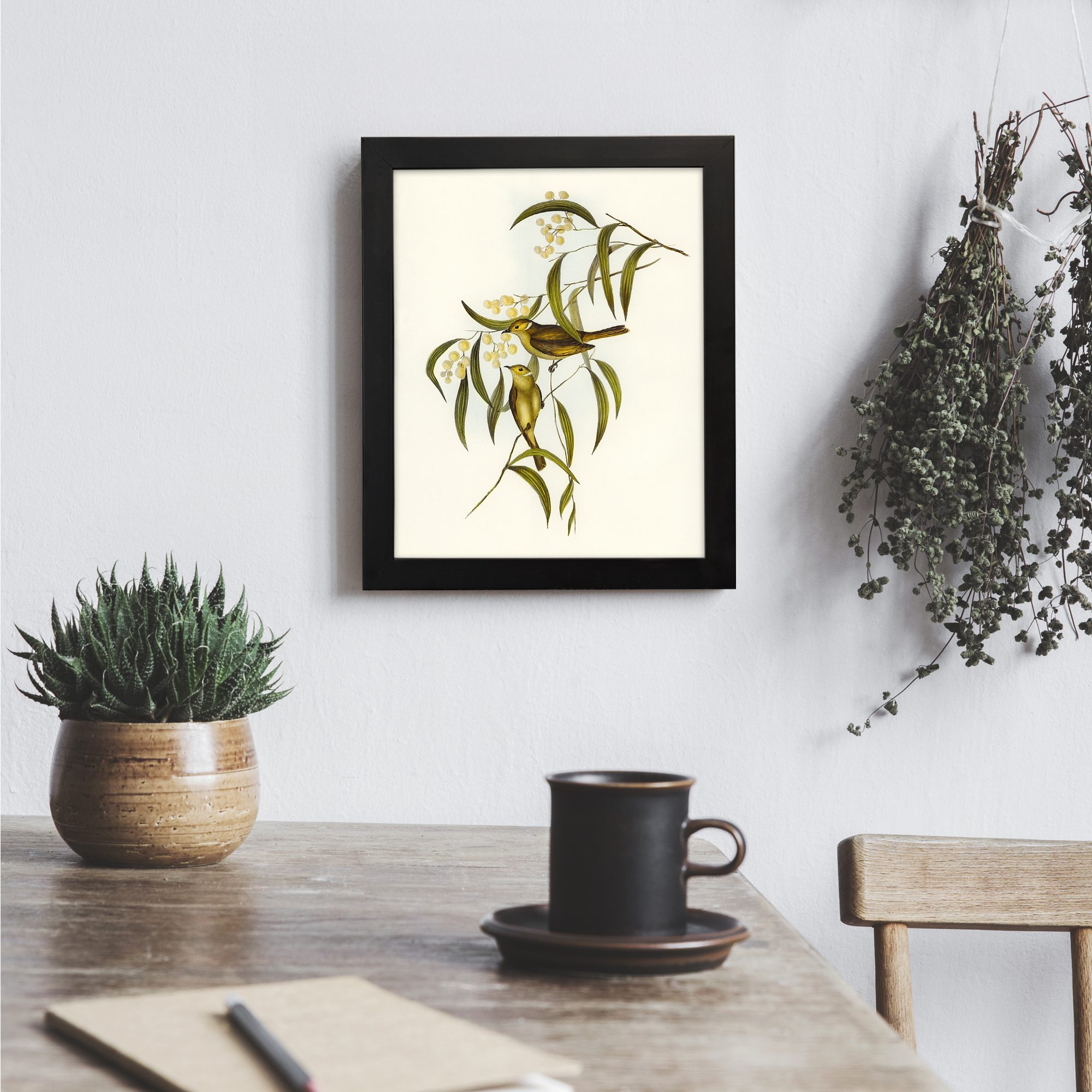 The mix of green leaves, subtle flowers, and the bird element creates a lively yet balanced look. Its vintage botanical style adds a timeless charm, making it a perfect centerpiece for your wall.