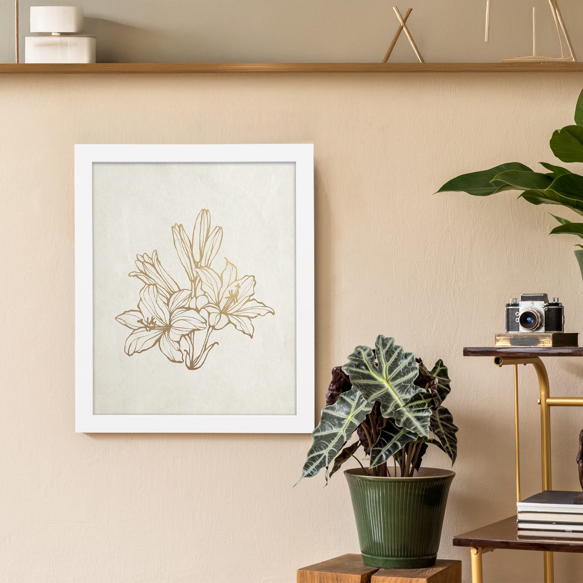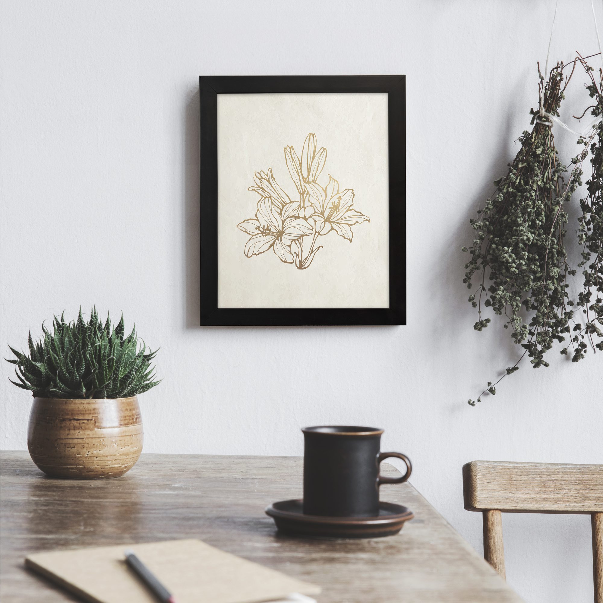 Add a touch of warmth and sophistication to your home or workspace with this botanical artwork.