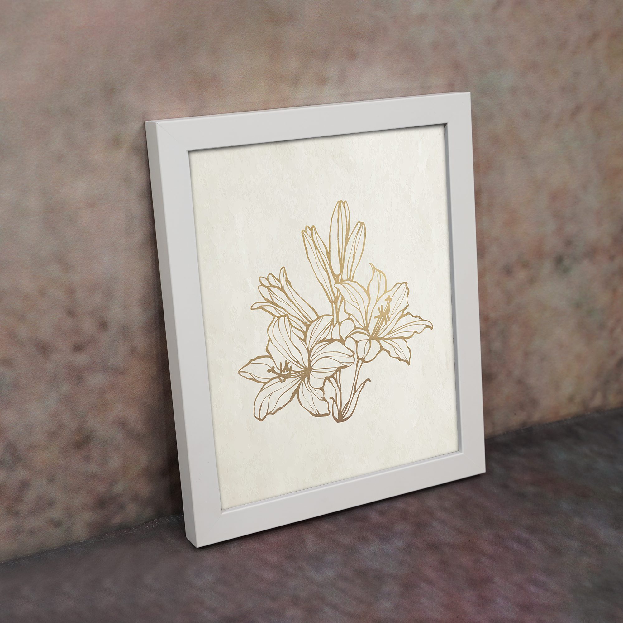 Enhance your space with the beauty of our Botanical Line Art. This artwork features a graceful cluster of flowers illustrated with smooth golden lines, creating a refined and elegant appearance. The minimal design keeps it clean while adding a soft premium touch to your wall.
