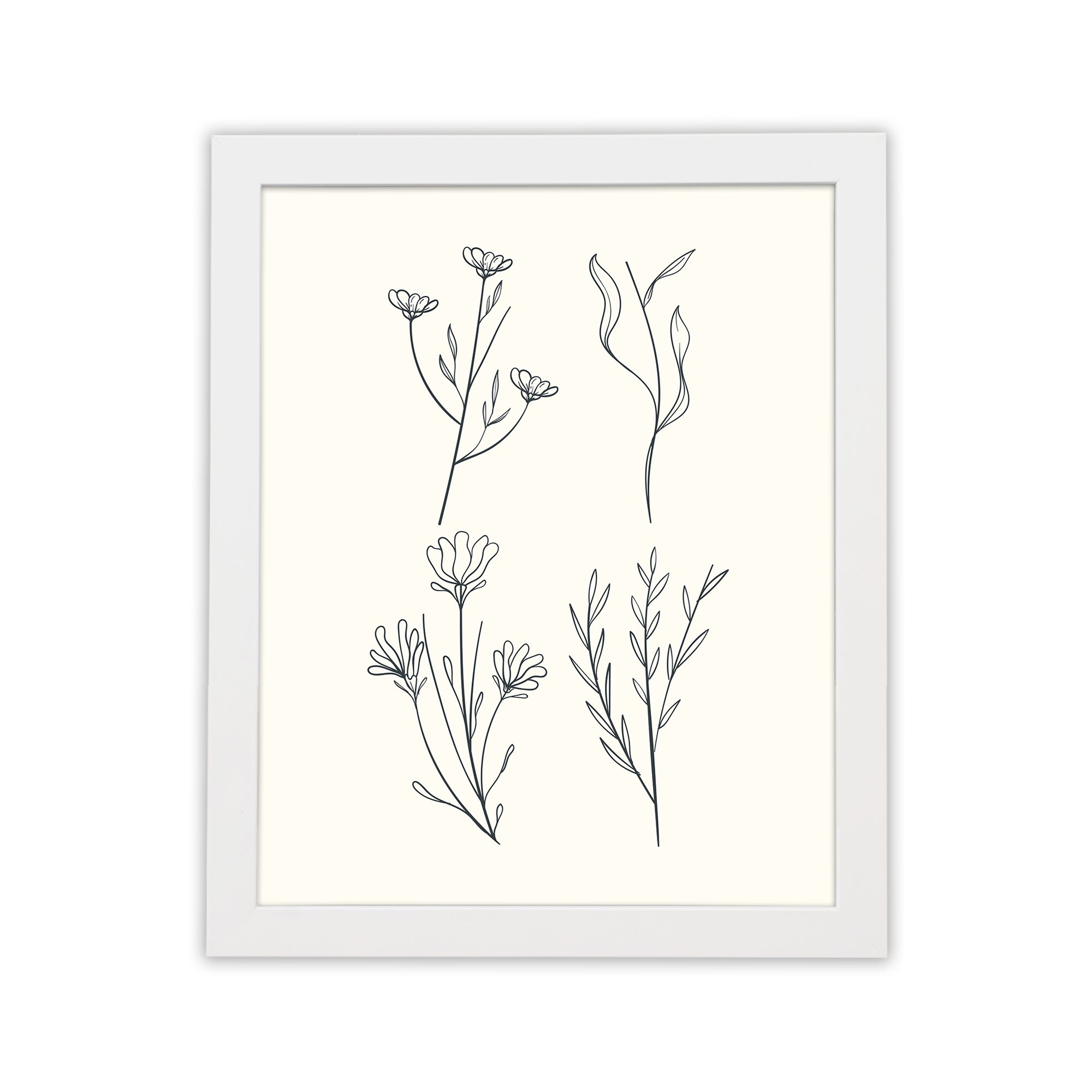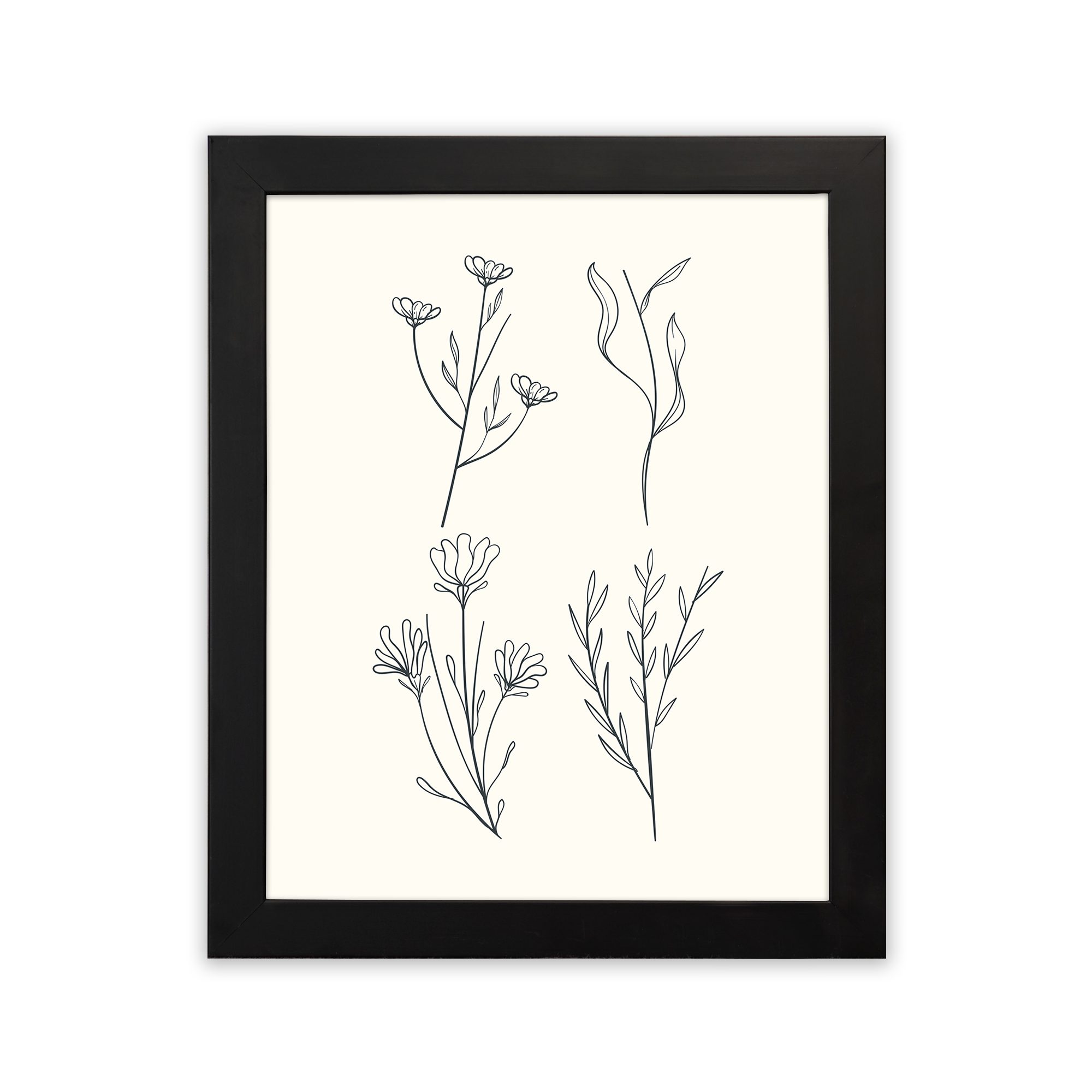 Infidu Botanical Line Art Floral Set Frame - Minimal Wall Decor - Wall Art- bla10