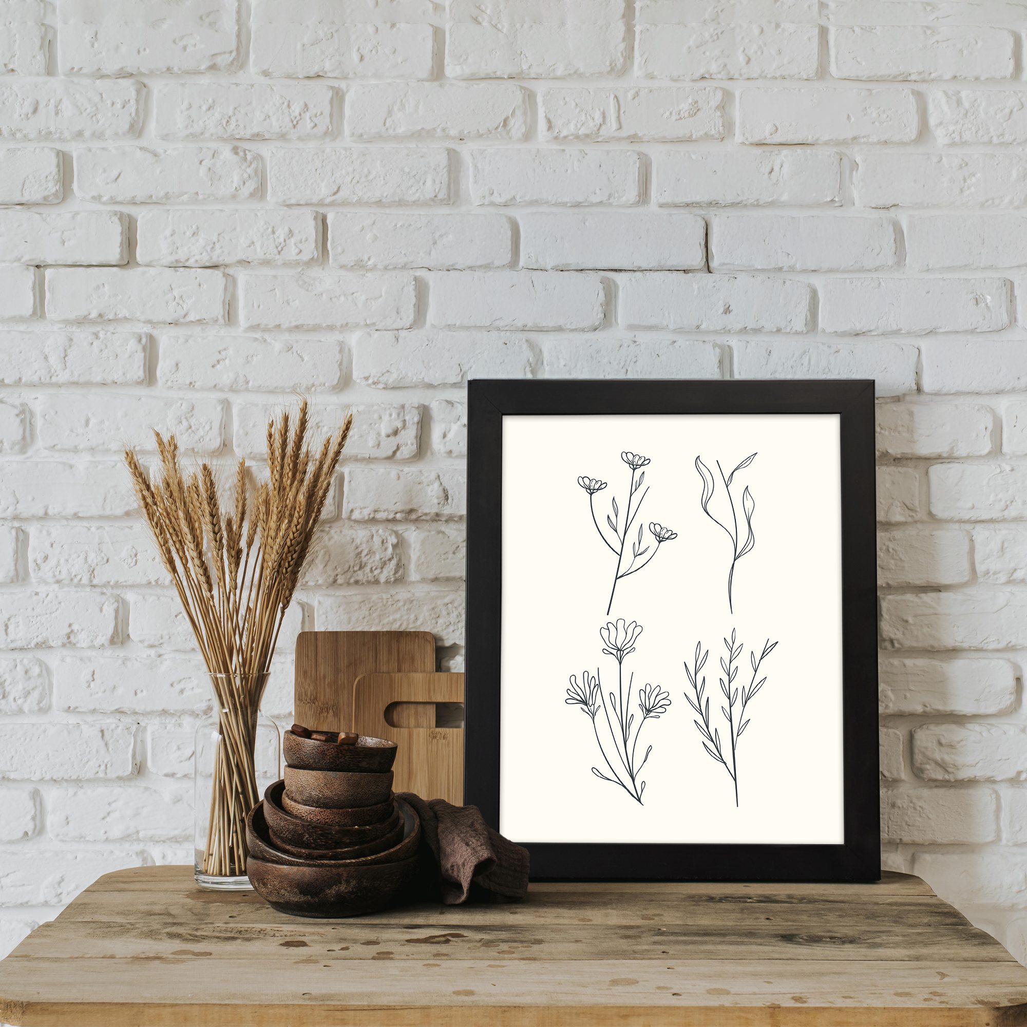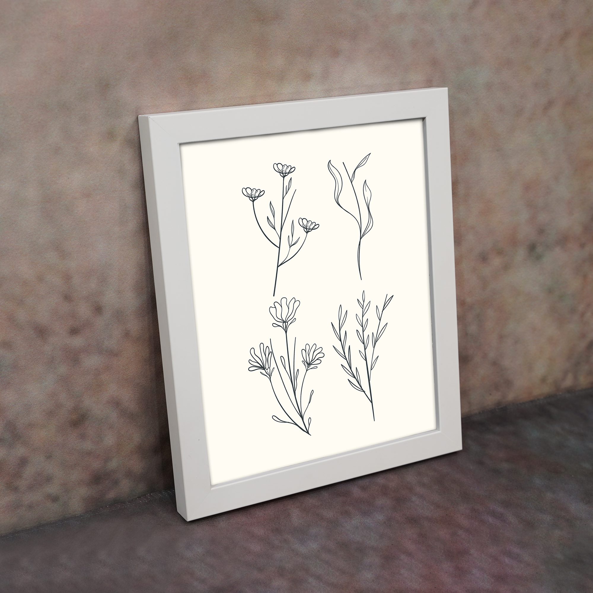 Add a unique and artistic touch to your space with our Botanical Line Art. This design features a collection of delicate floral elements arranged in a clean and minimal style. Each stem and flower is drawn with fine lines, creating a balanced and elegant composition.