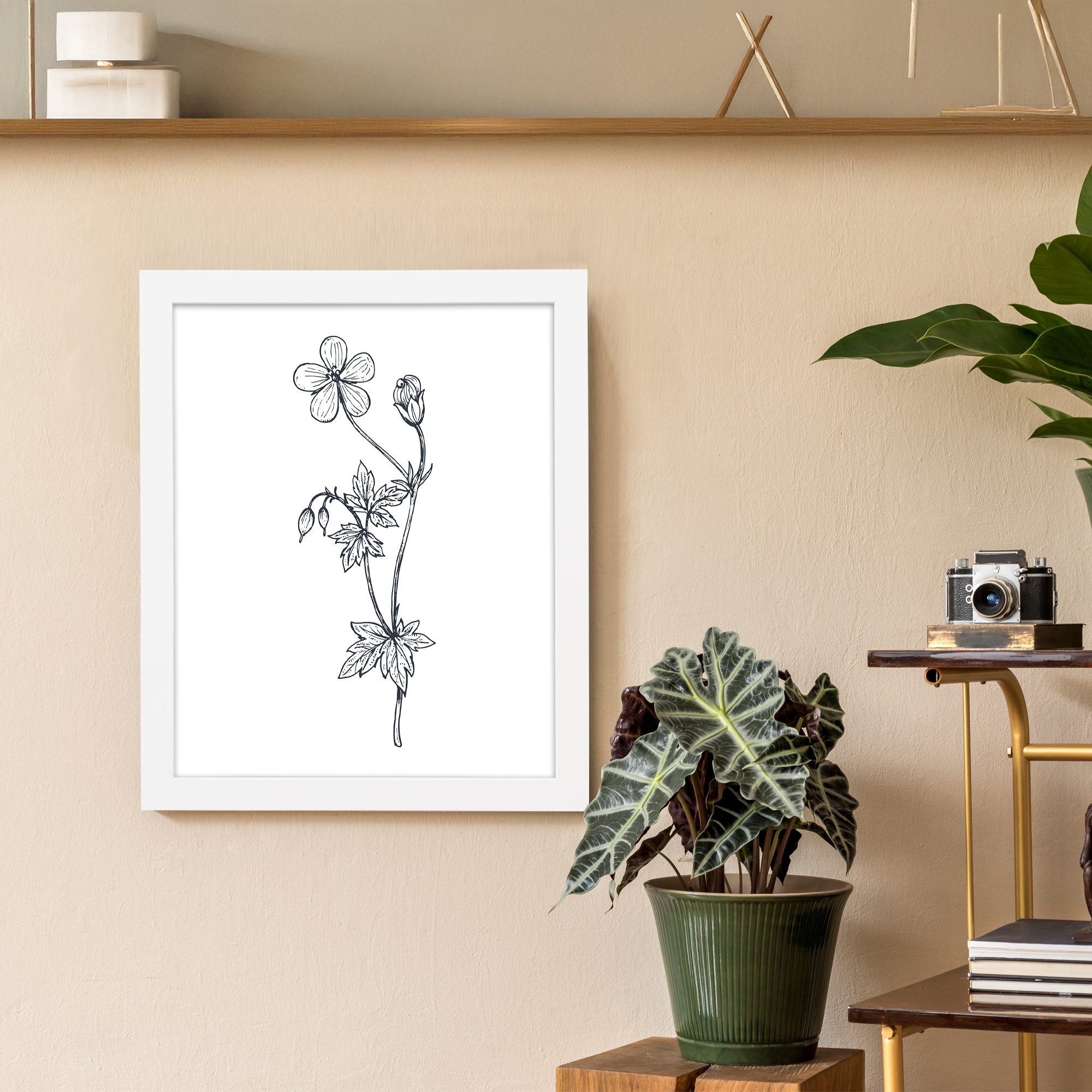 Add a light and elegant touch to your space with our Botanical Line Art. This artwork features a simple floral stem design with fine line detailing, creating a clean and graceful look. The minimal black-and-white style keeps it modern and easy to match with any interior.