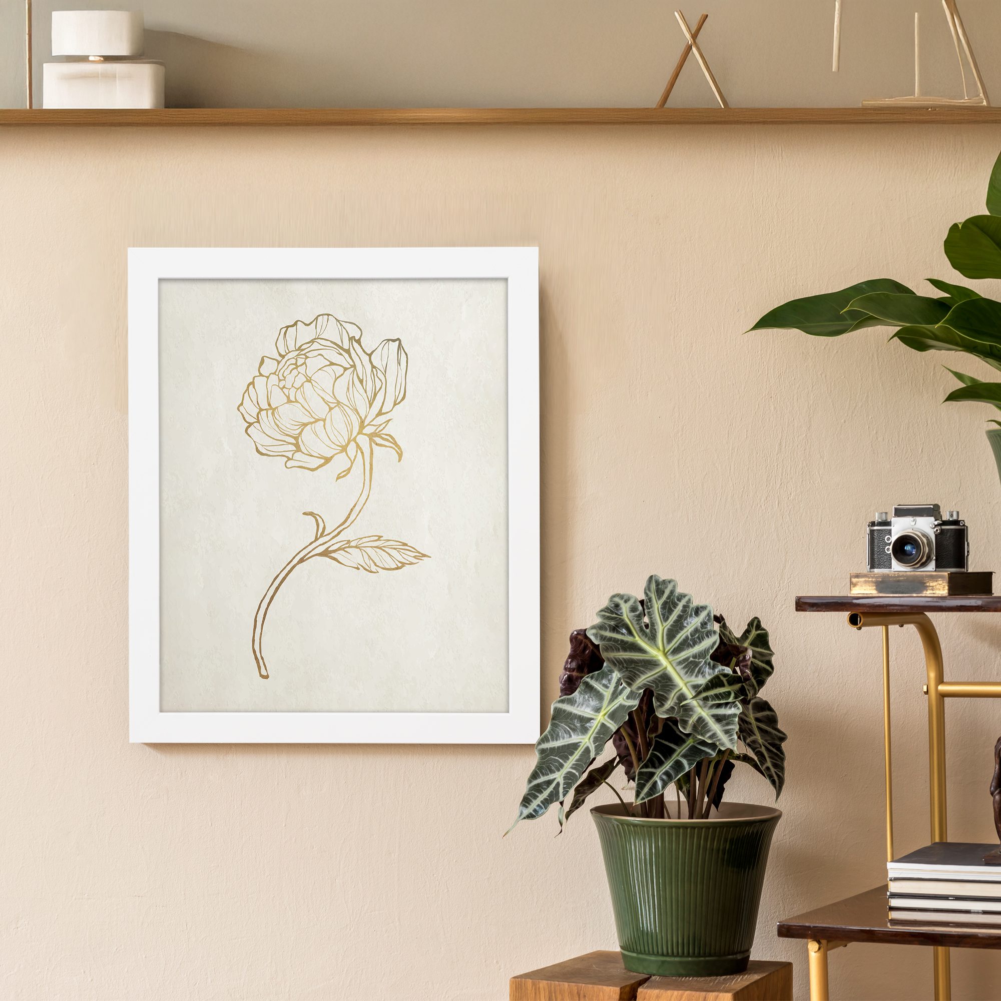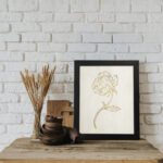 Add a touch of elegance to your space with our Botanical Line Art. This artwork features a beautifully detailed flower drawn with smooth and flowing lines, highlighted in a subtle golden tone. The minimal design creates a clean and refined look that enhances any wall.