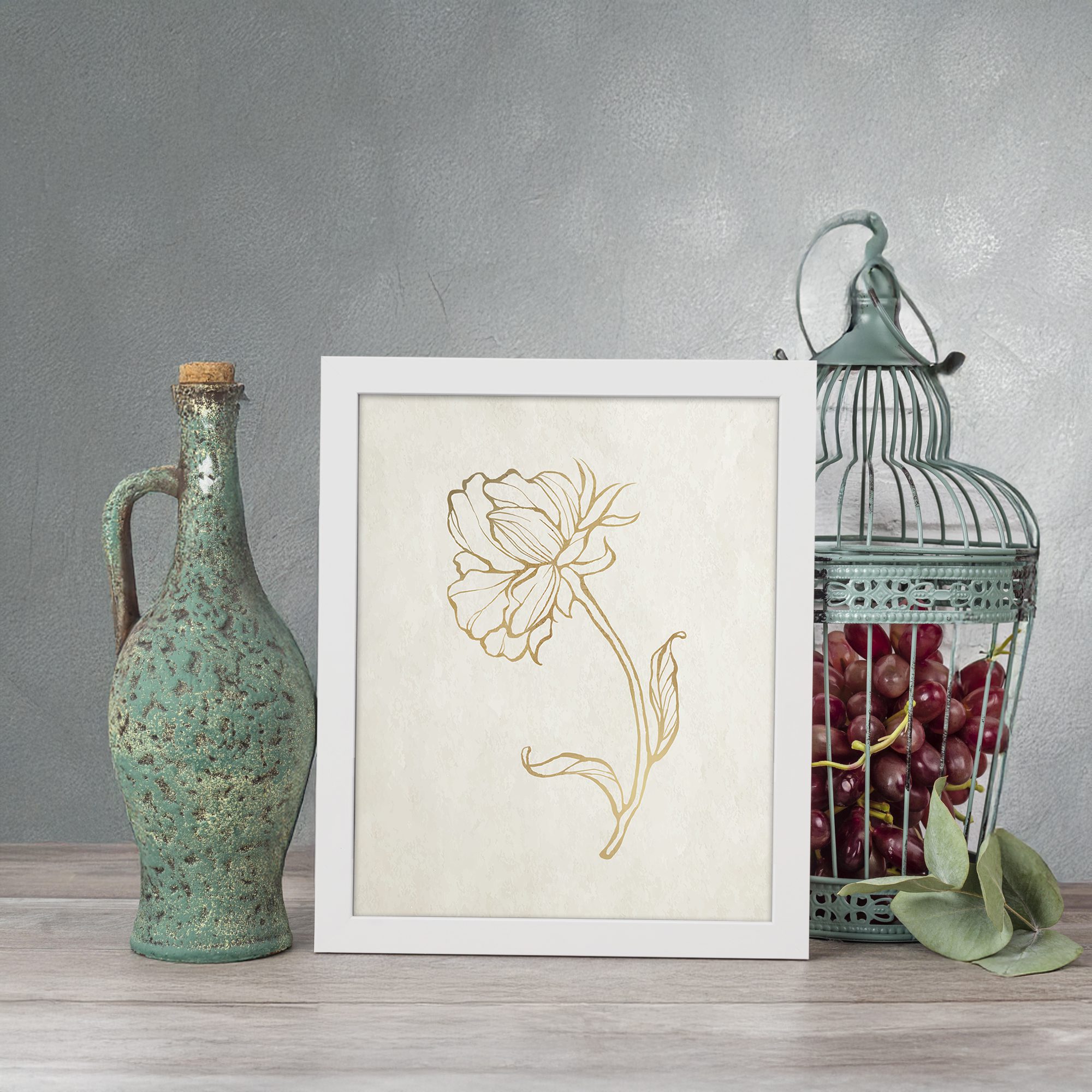 Add a refined and elegant touch to your space with our Botanical Line Art. This artwork features a beautifully drawn flower with soft golden line detailing, creating a rich yet minimal look. The design keeps things simple while adding a subtle premium feel to your wall décor.