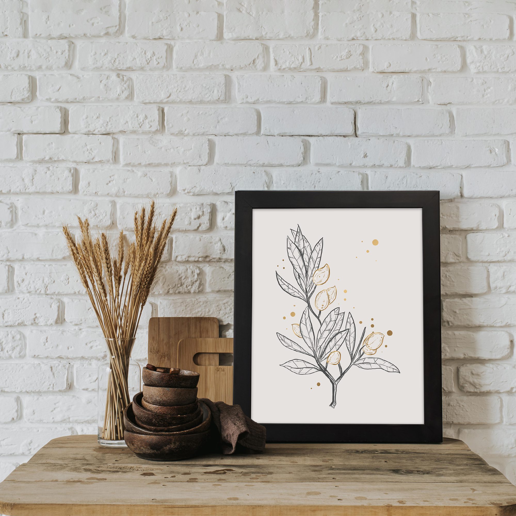 Home Wall Art Botanical Art Botanical Line Art Infidu Botanical Line Art Gold Leaf Frame – Modern Wall Decor – Wall Art- bla49