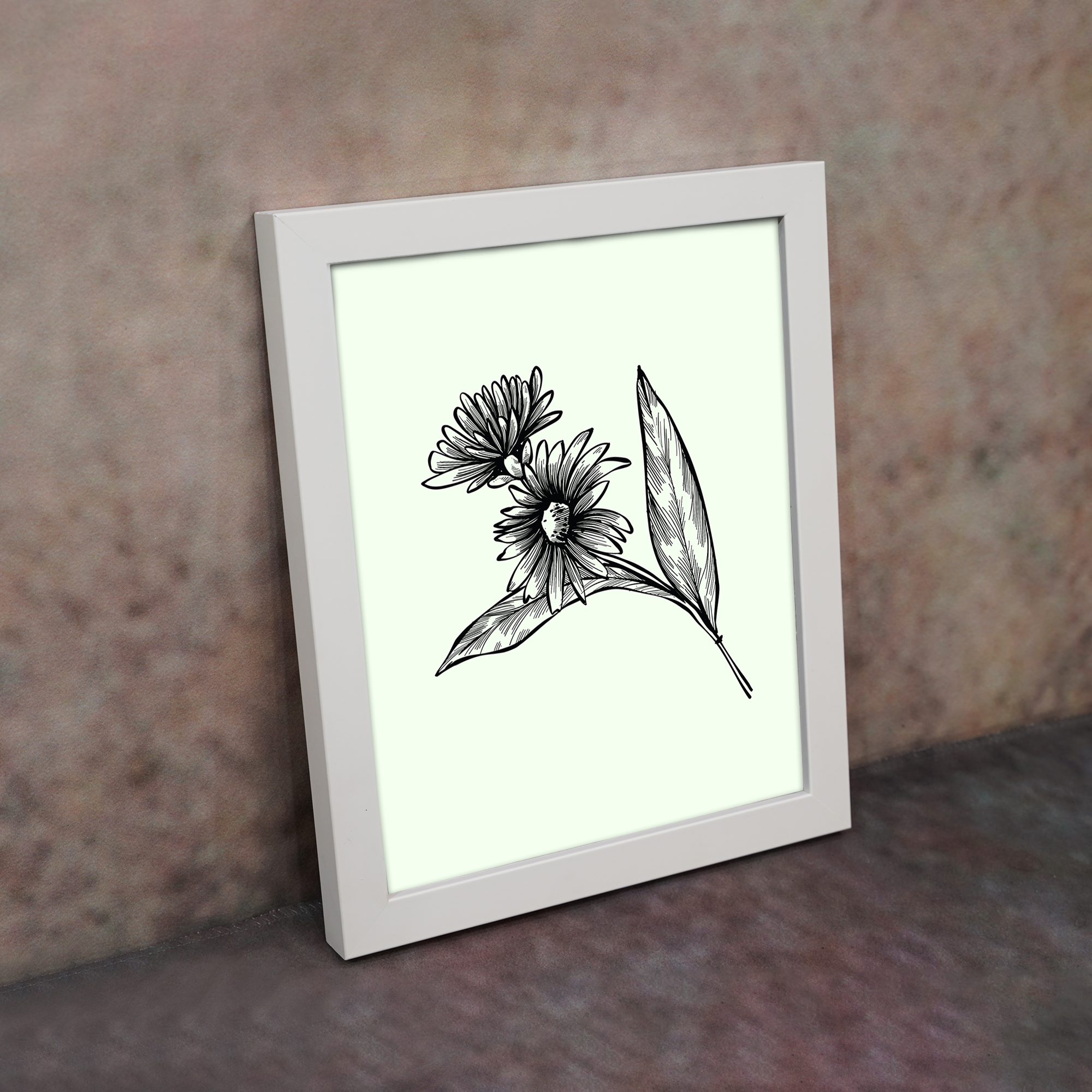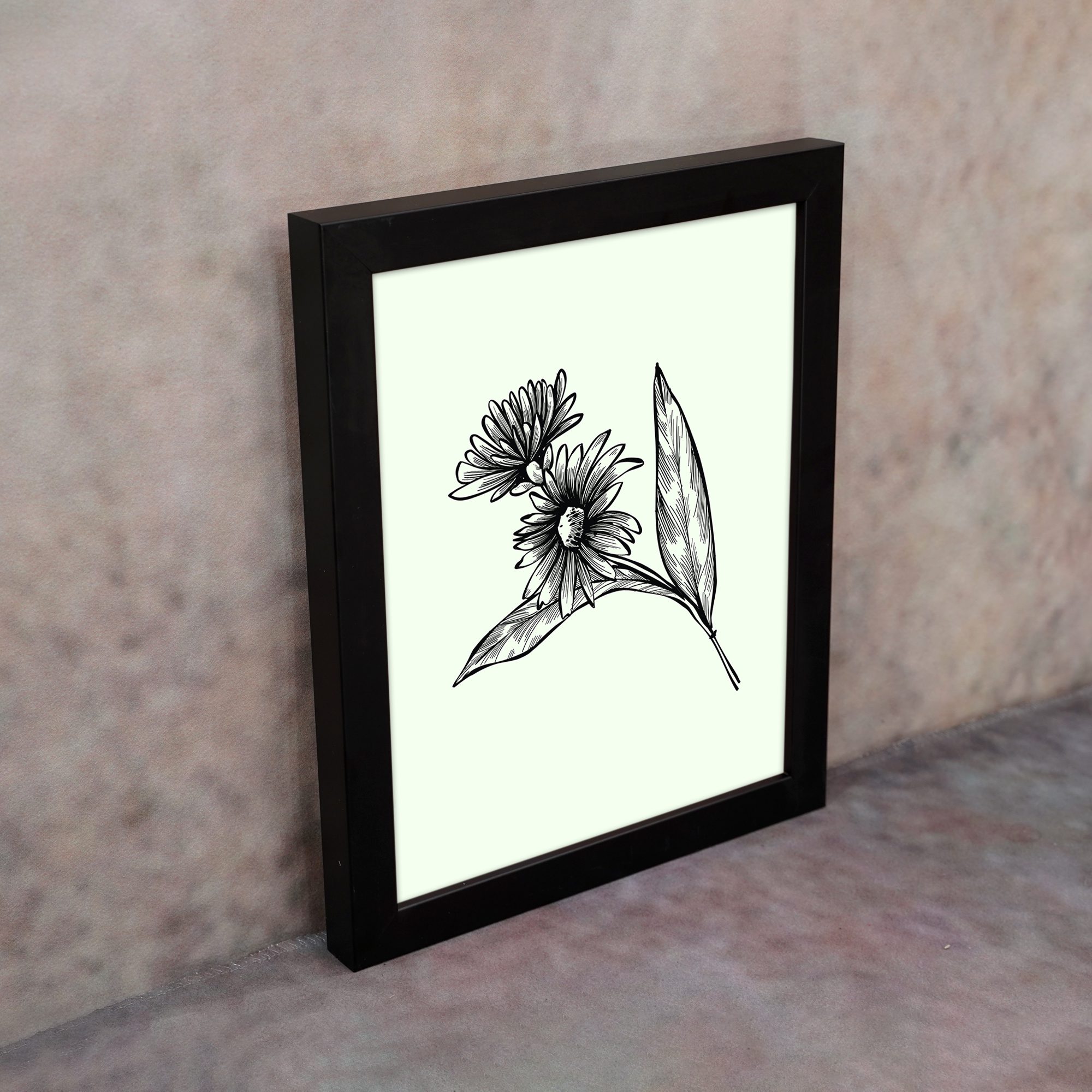 Infidu Botanical Line Art Green Flower Sketch Frame - Wall Decor - Wall Art- bla39