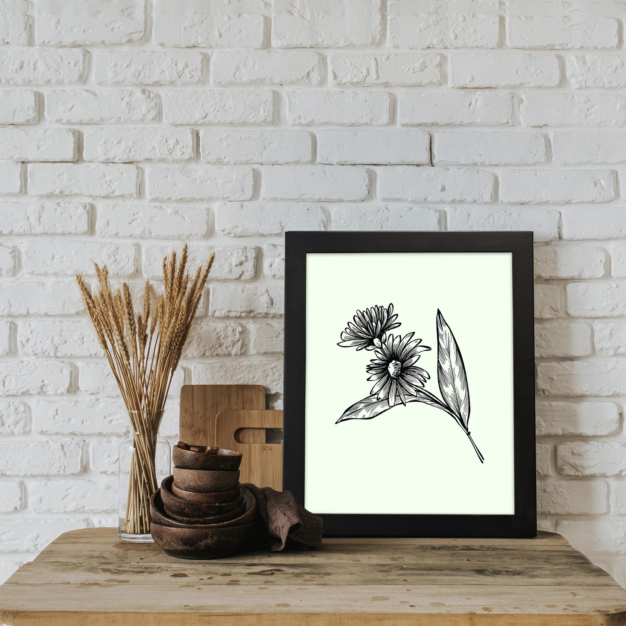 Infidu Botanical Line Art Green Floral Sketch Frame – Wall Decor – Wall Art- bla38