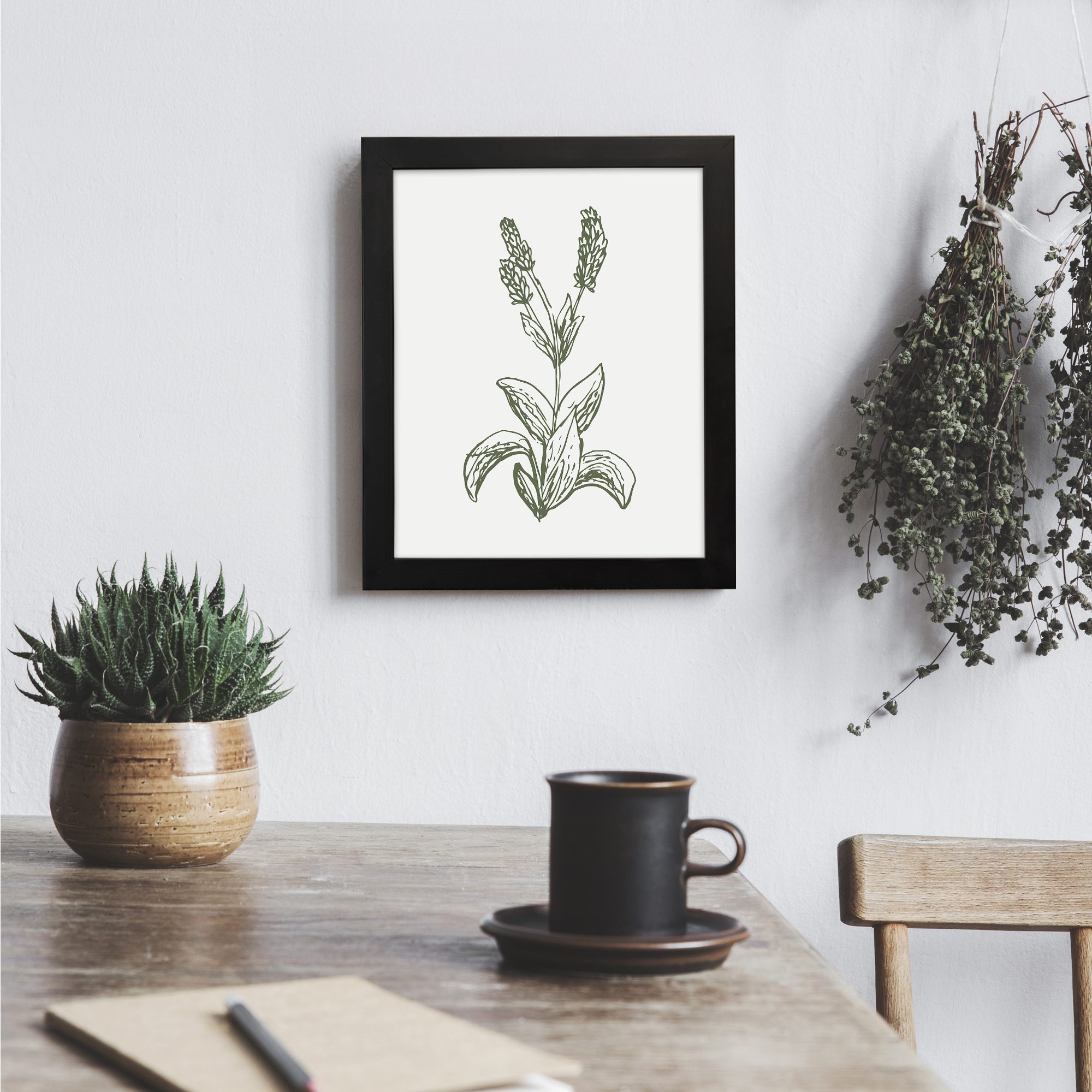 Bring a soothing and nature-inspired touch to your space with our Botanical Line Art. This artwork features a detailed herbal plant design with fine lines and soft shading, creating a calm and refreshing look. The minimal black-and-white style keeps it clean while adding a natural texture.