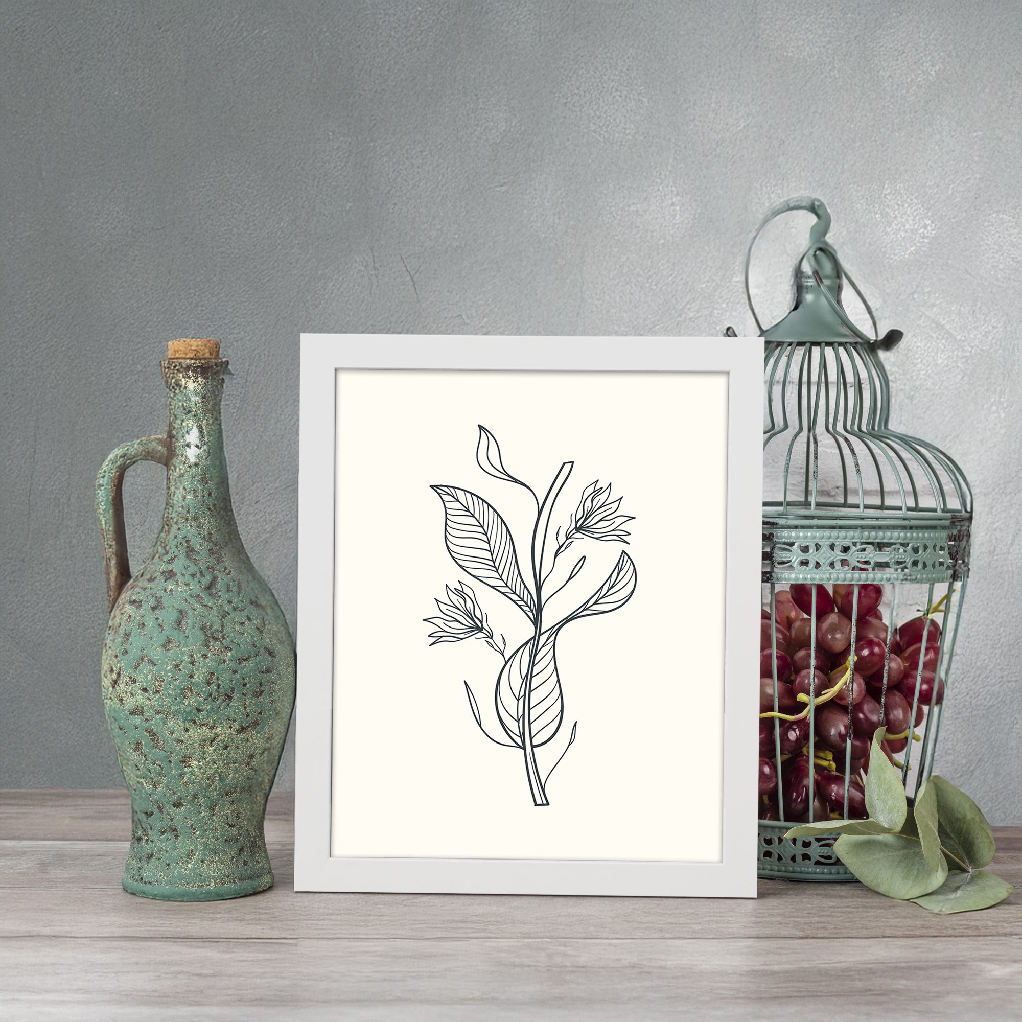 Home Wall Art Botanical Art Botanical Line Art Infidu Botanical Line Art Leaf Frame – Minimal Modern Wall Decor – Wall Art- bla09