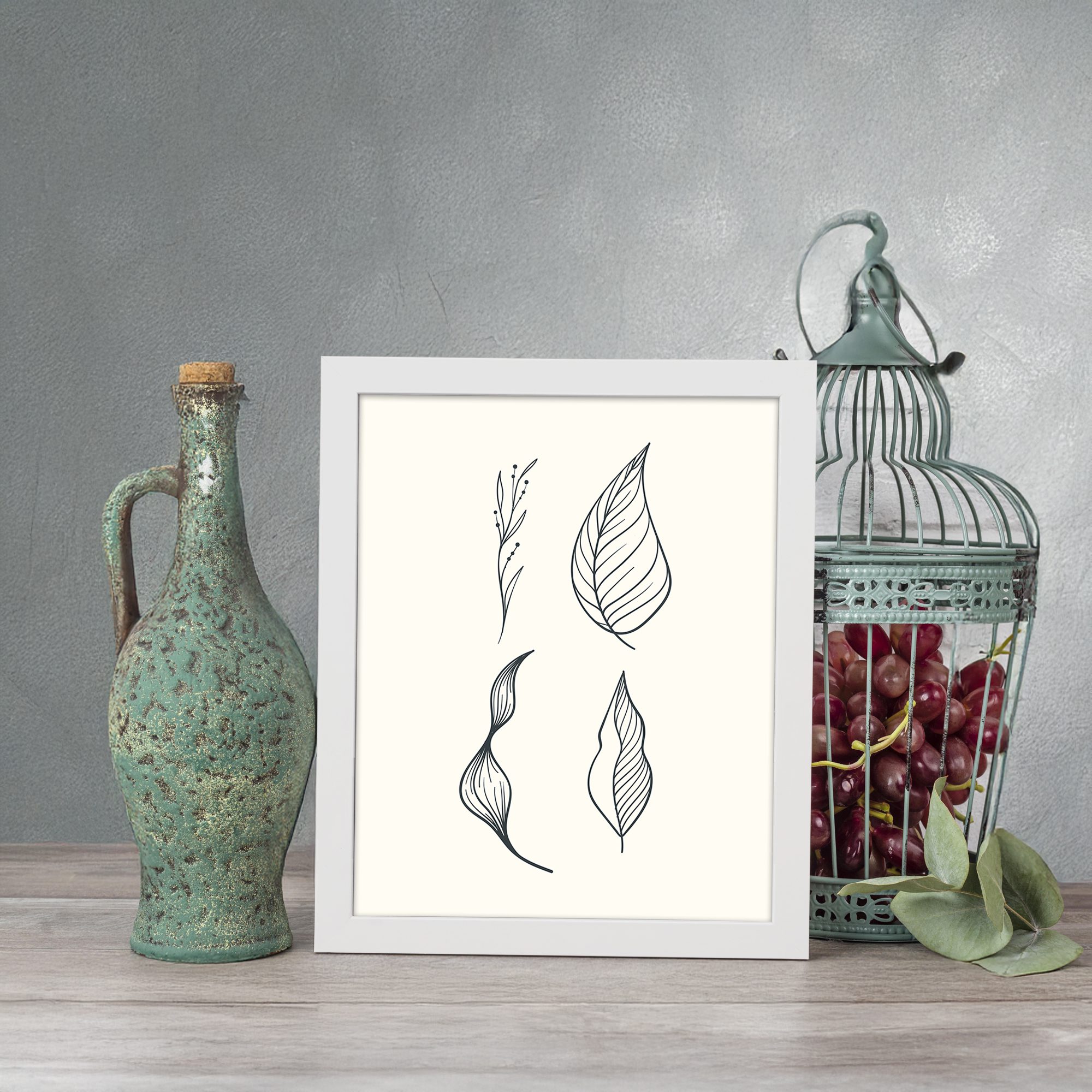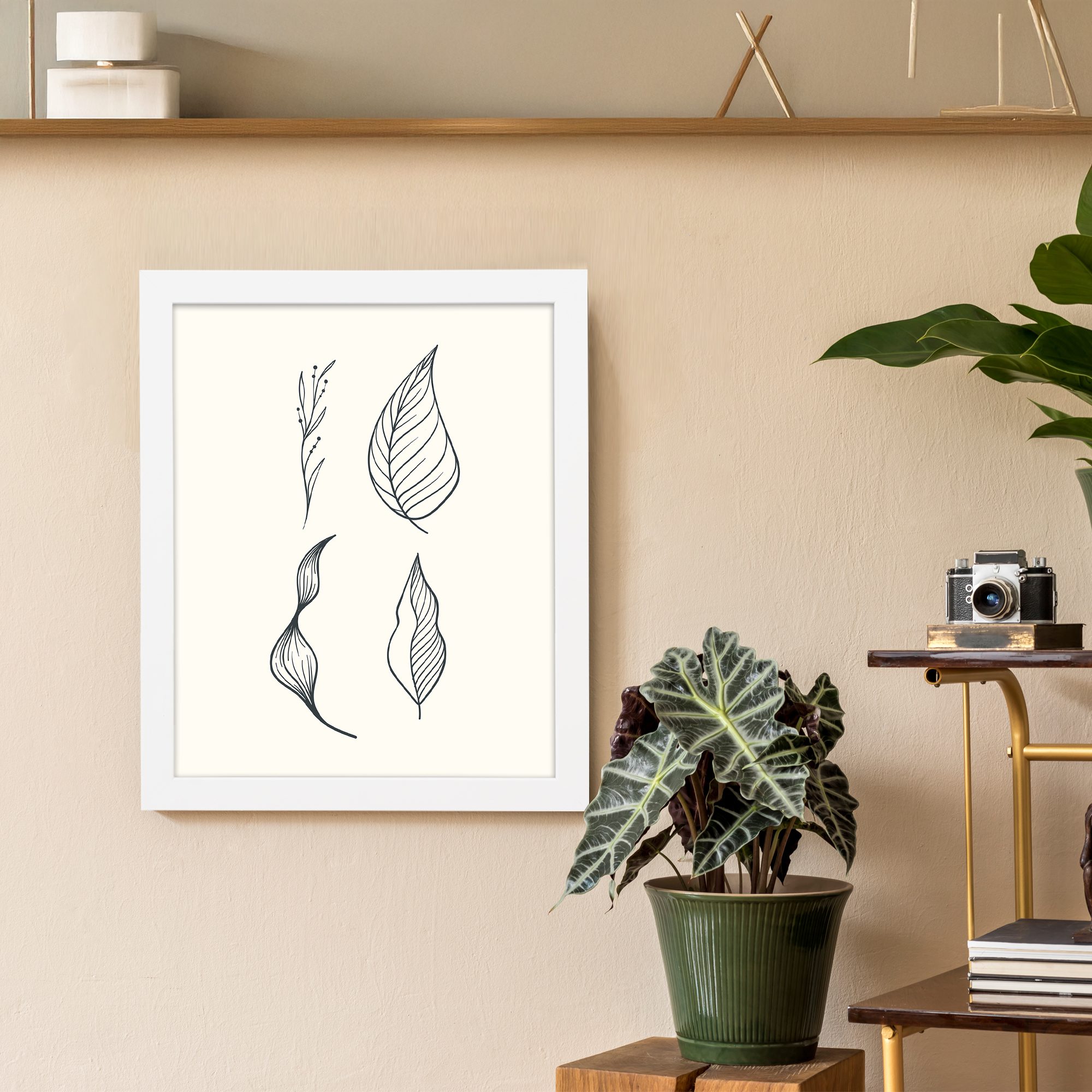 Bring a modern and artistic touch to your space with our Botanical Line Art. This design features a mix of leaf shapes and abstract botanical elements, drawn with clean and flowing lines. The minimal black-and-white style creates a neat and elegant look for any wall.