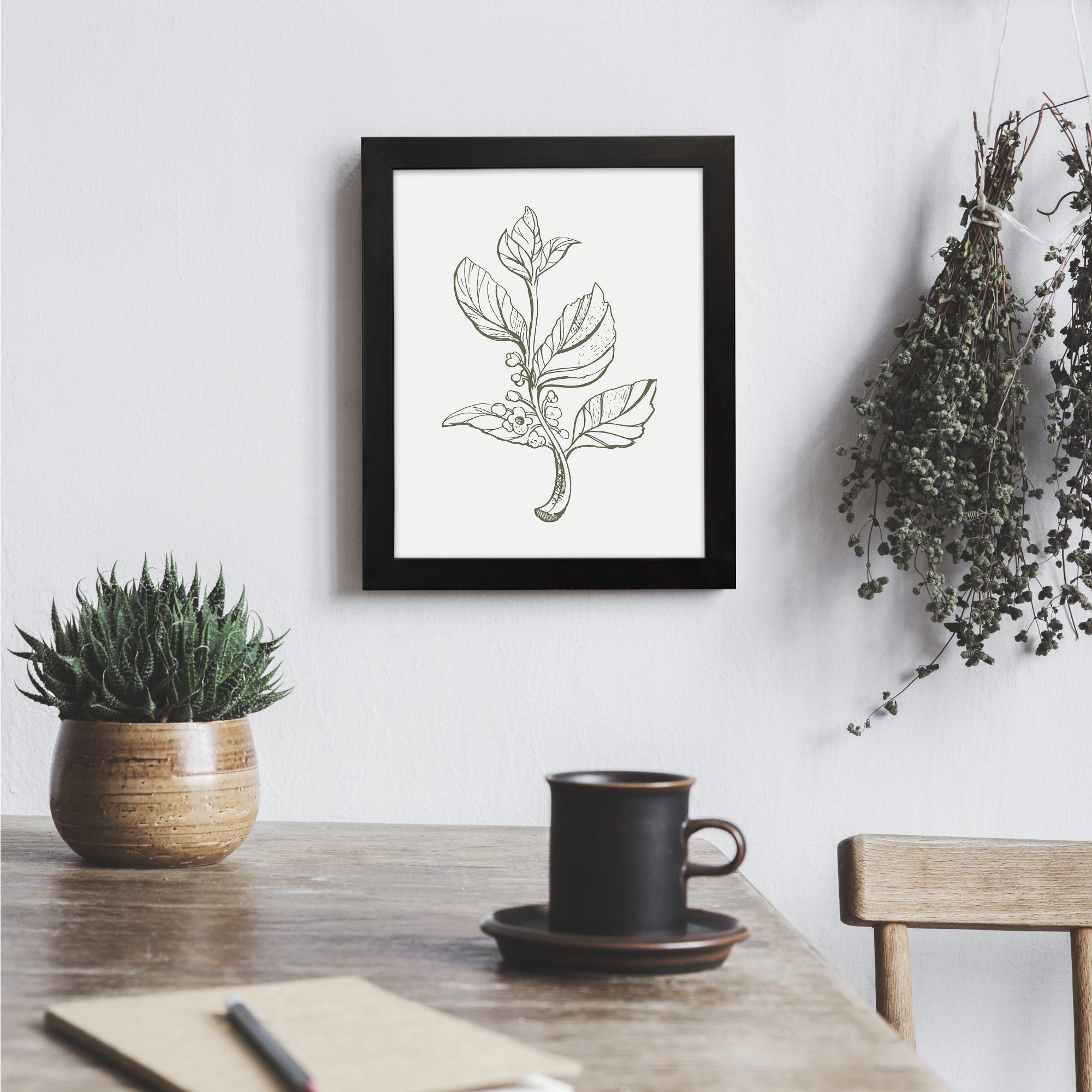 Add a fresh and artistic touch to your home or workspace with this botanical artwork.