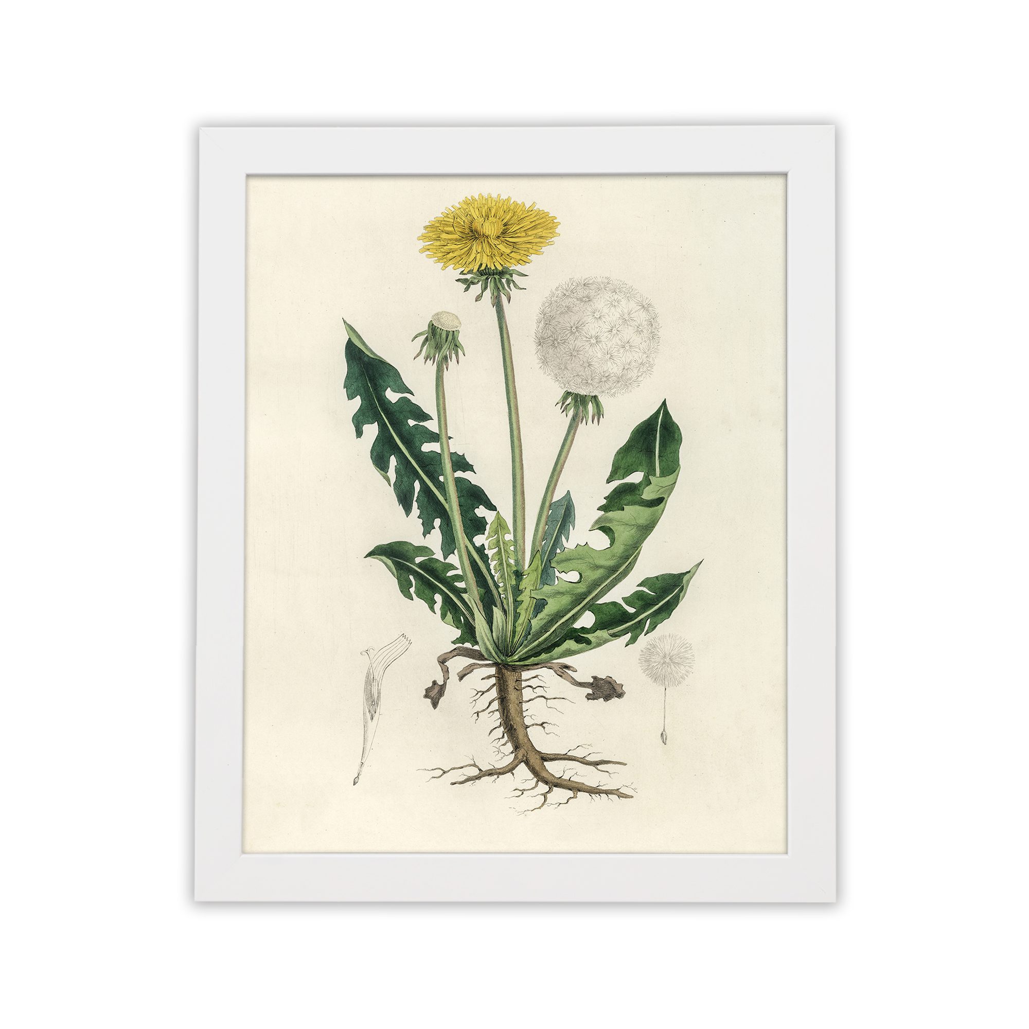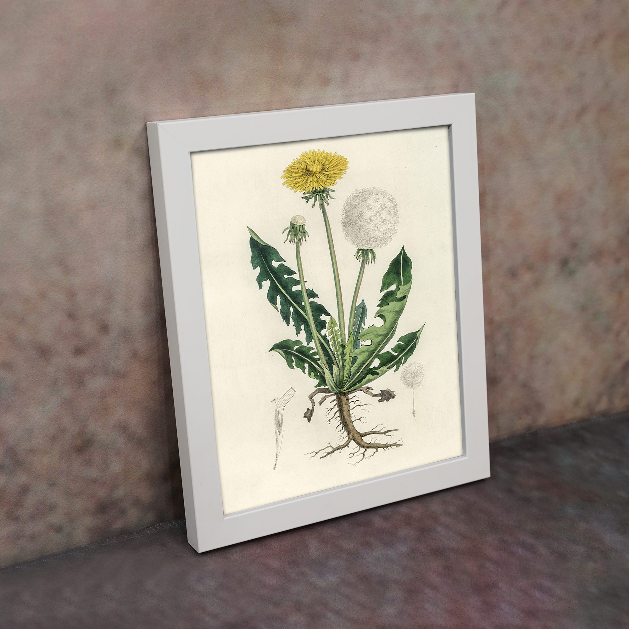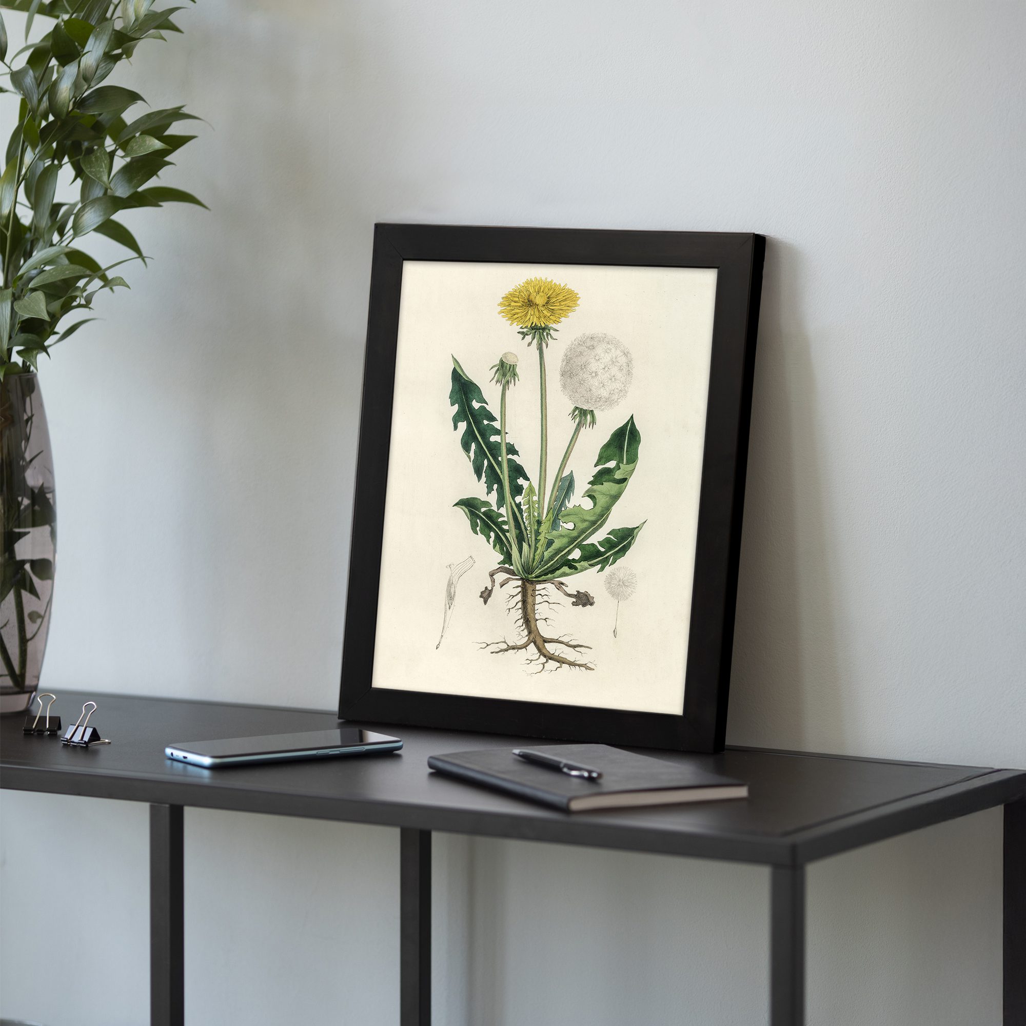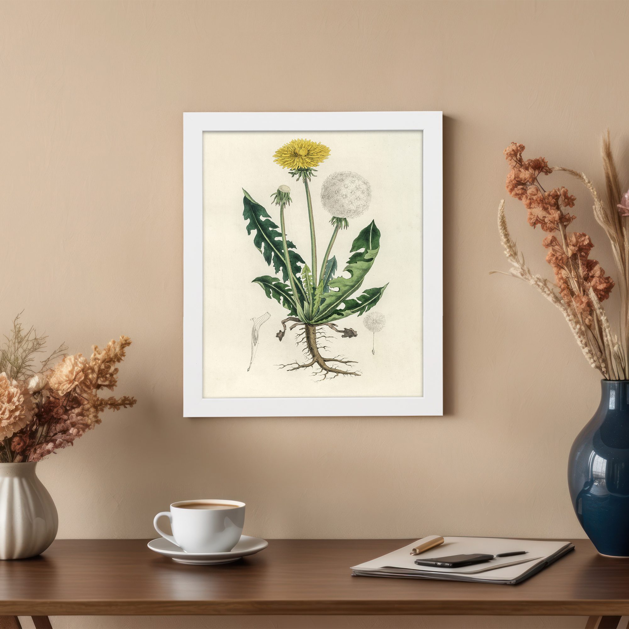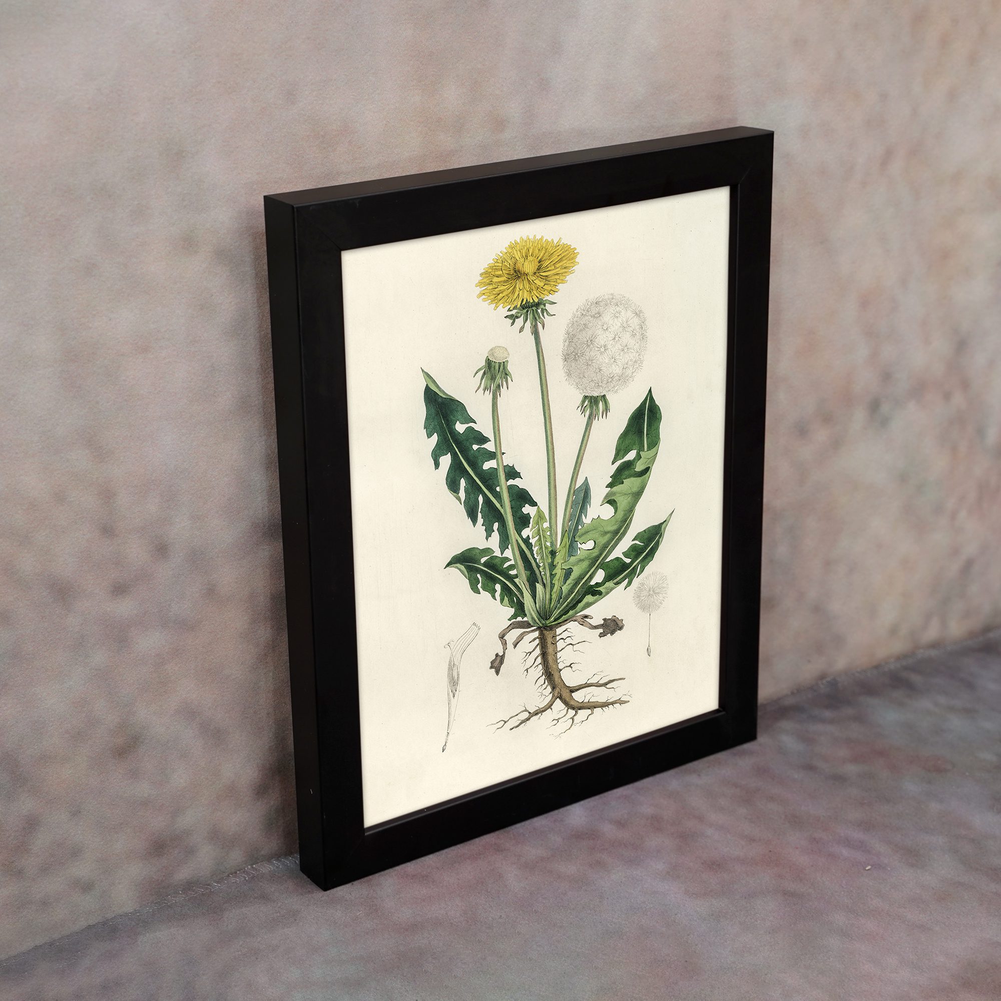 Bring a classic and nature-inspired touch to your space with our Botanical Wall Art. This artwork features a detailed dandelion plant illustration, including its bright yellow flower, green leaves, and root structure. The vintage style gives it a timeless and authentic look.