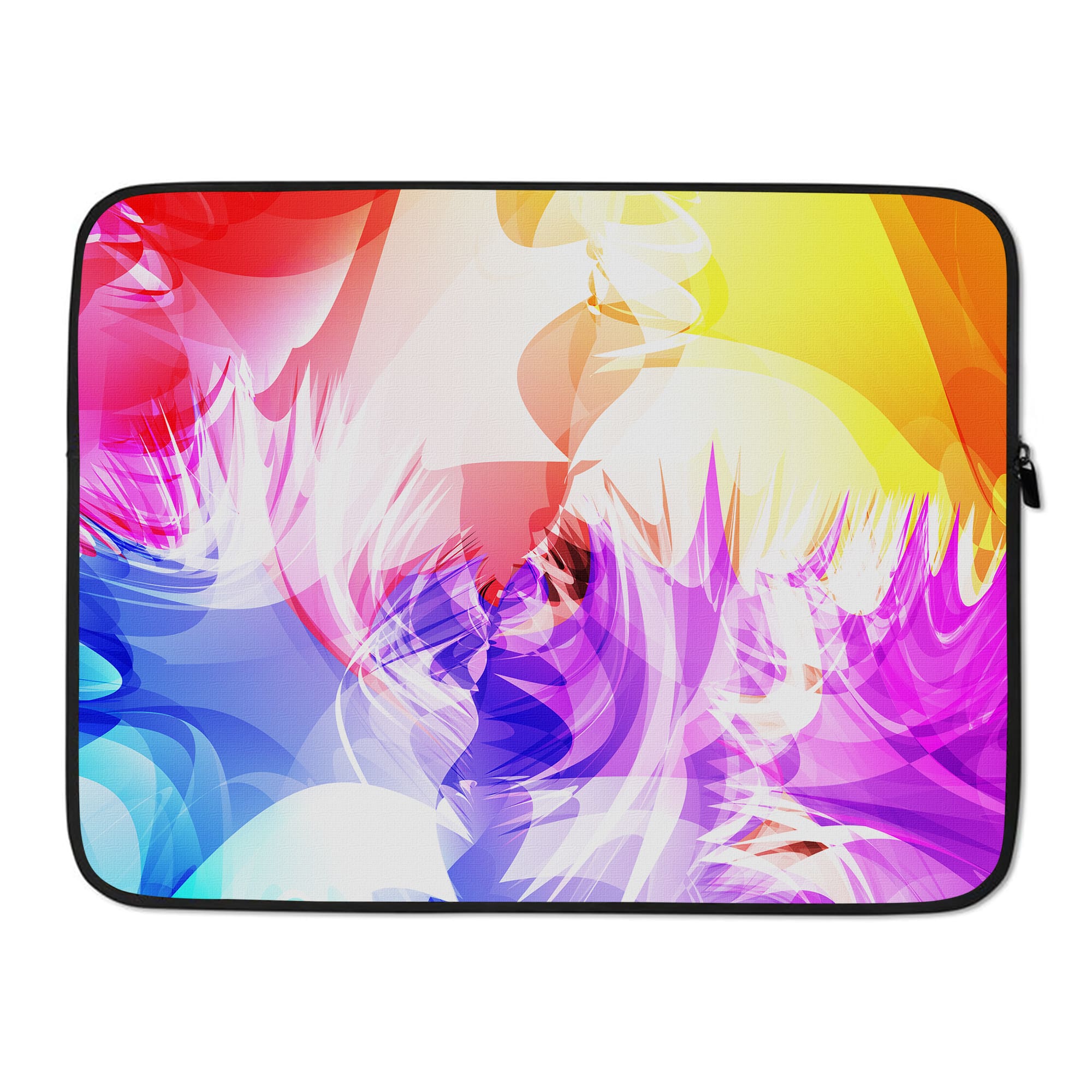 Infidu Abstract Colorful Bright Laptop Sleeve with Texture The pattern on this laptop sleeve is bright and colorful, with shades of pink, purple, white, blue, and yellow. The abstract designs look like smooth, textured surfaces, giving the piece a lively and artistic look. This sleeve has a zip closure for a secure fit and is perfect for covering your laptop in style. Skilled digital artists designed this high-quality item using long-lasting cloth. This item is ideal for individuals seeking to incorporate color into their laptop bags!