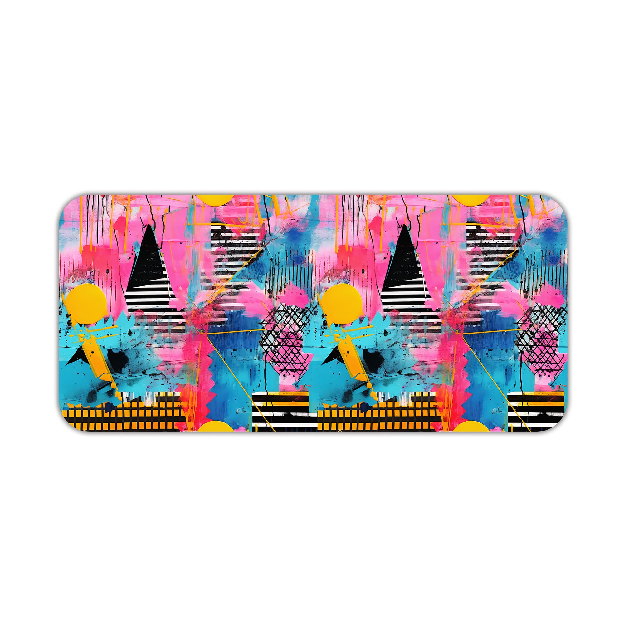 Add a splash of color to your desk with the Infidu Colorful Desk Pad, which has a unique, abstract triangle shape. This outfit is stylish and up-to-date because it has shades of pink, blue, and yellow, as well as big black triangles and yellow circles. This desk mat infuses any desk with a vibrant, artistic touch, thanks to its soft pastel colors that seamlessly blend into the background. Skilled digital artists have created this high-quality product, which is perfect for both home and office use. Get this desk mat right now to make your work area look better!