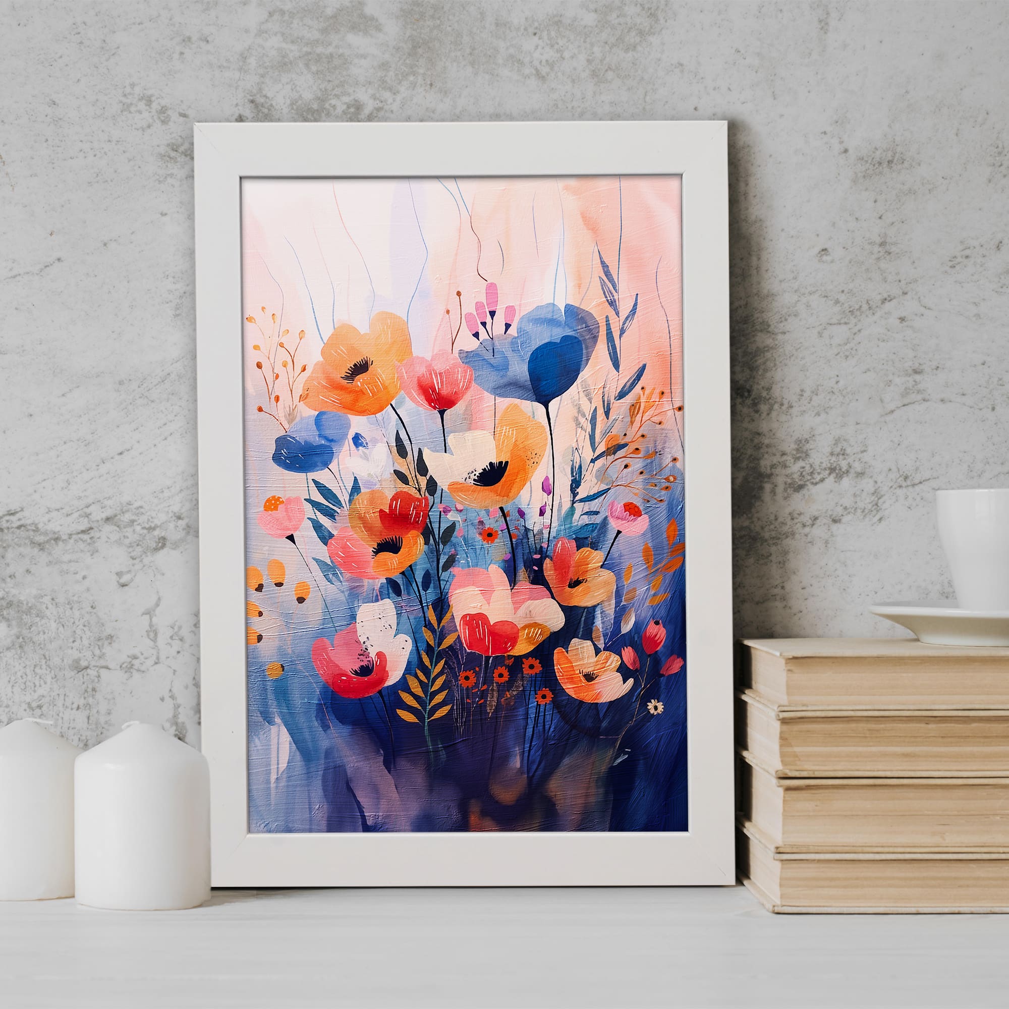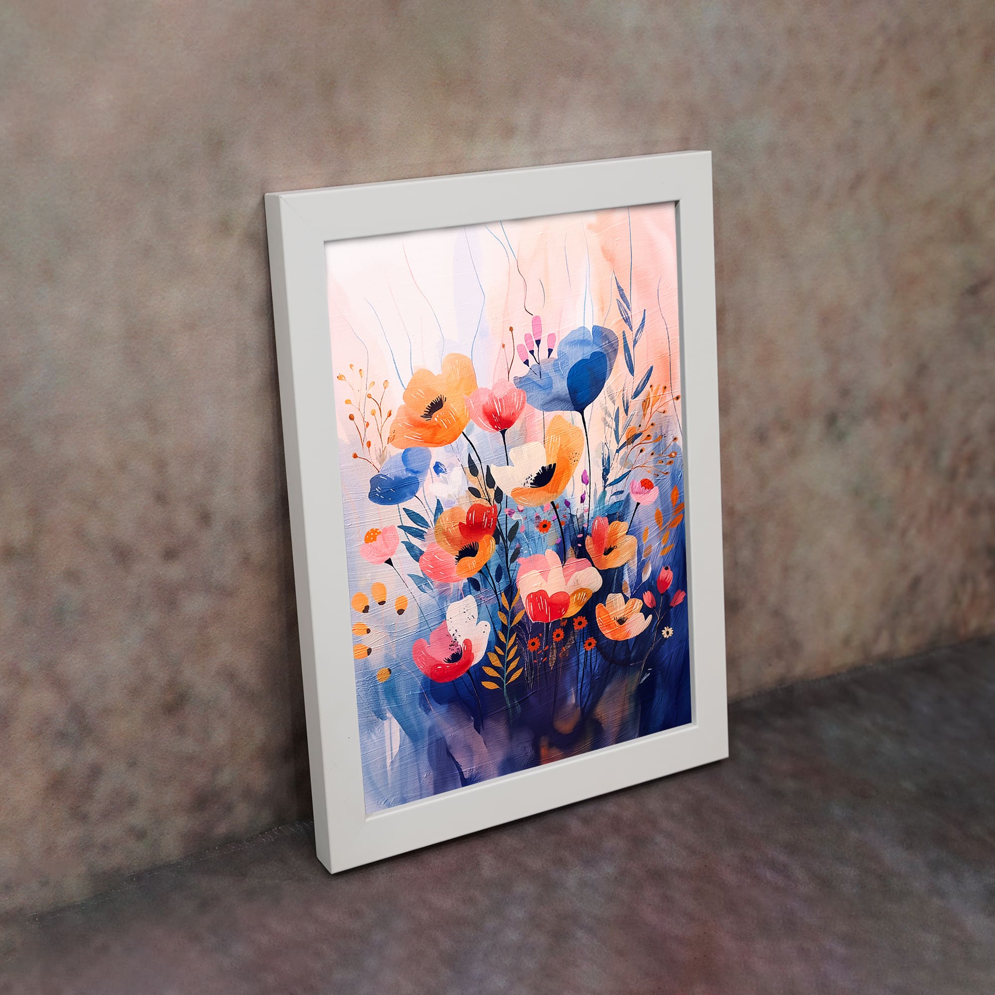 Inspired by floral paintings art, the artwork uses smooth brush strokes and gentle color blending to give a soft and artistic feel. The mix of bright floral tones with subtle background shades makes it perfect for modern and cozy interiors.