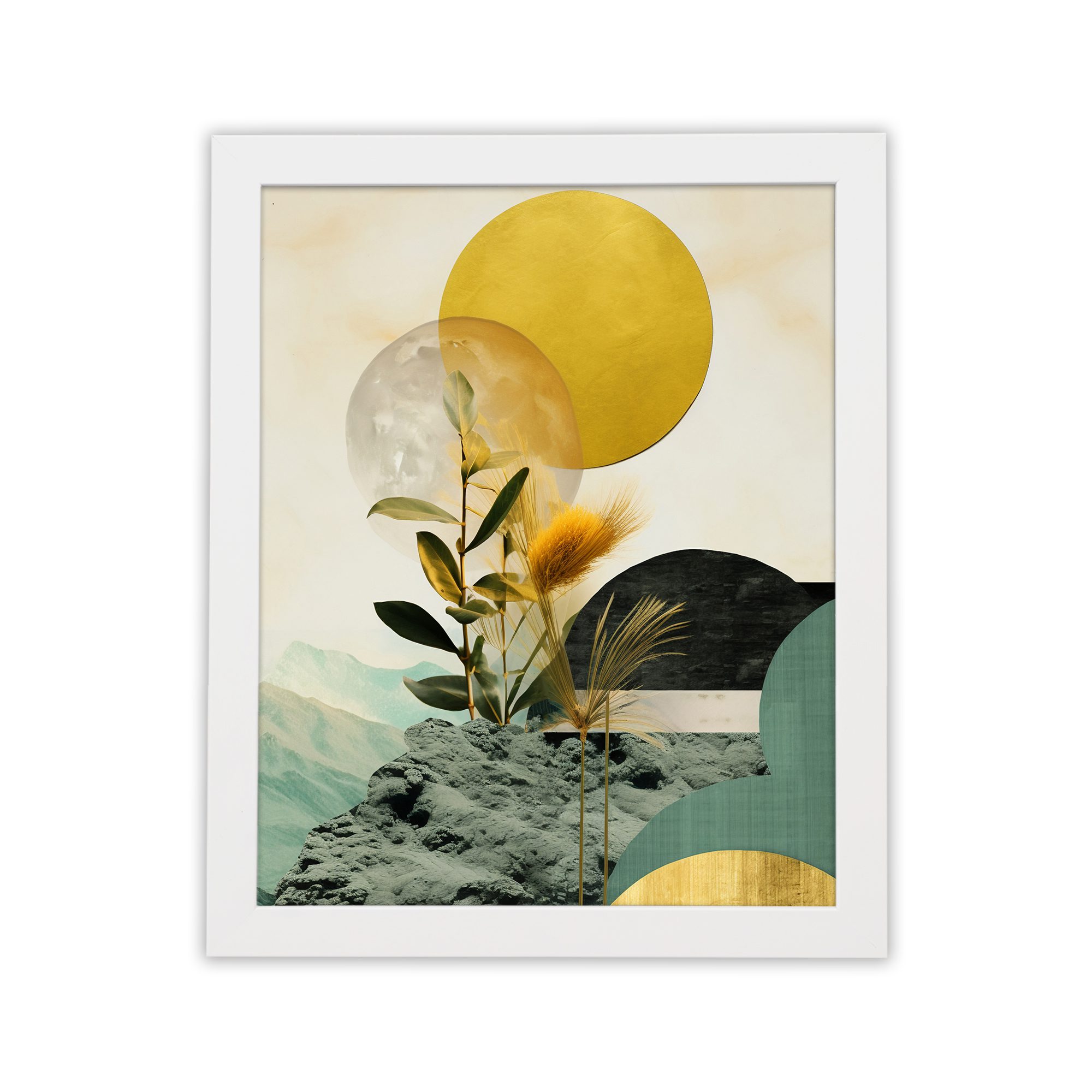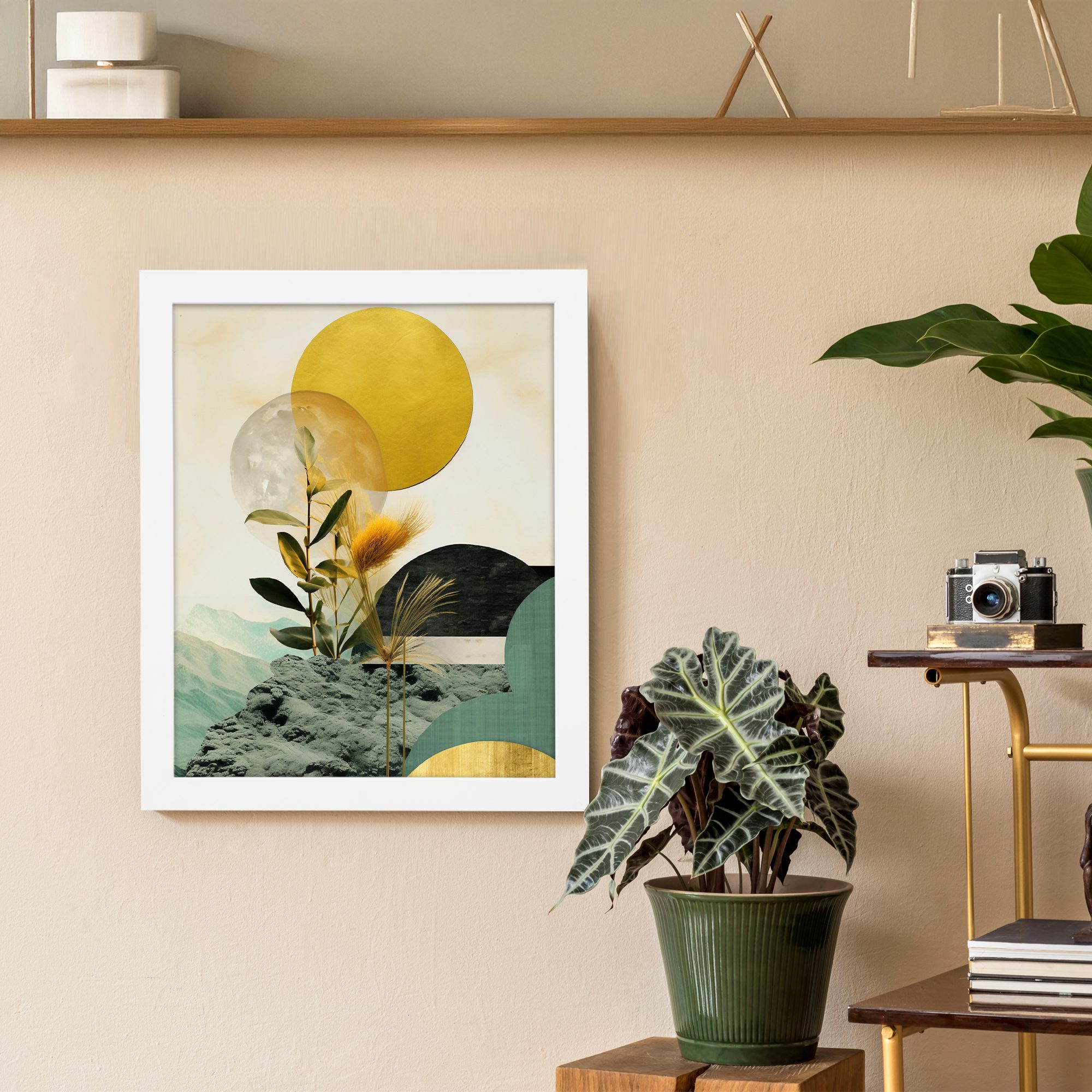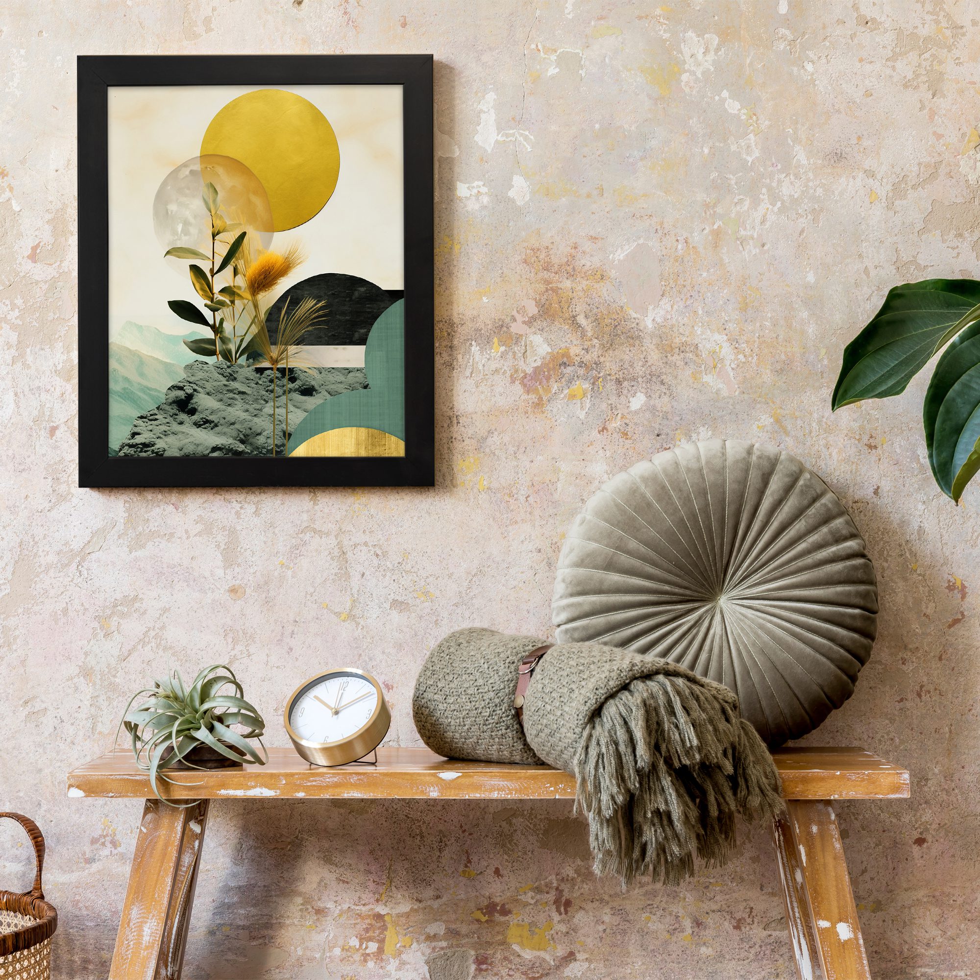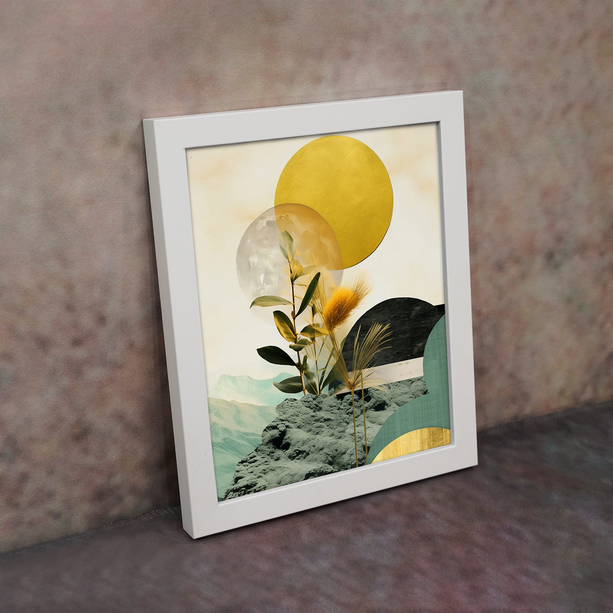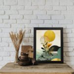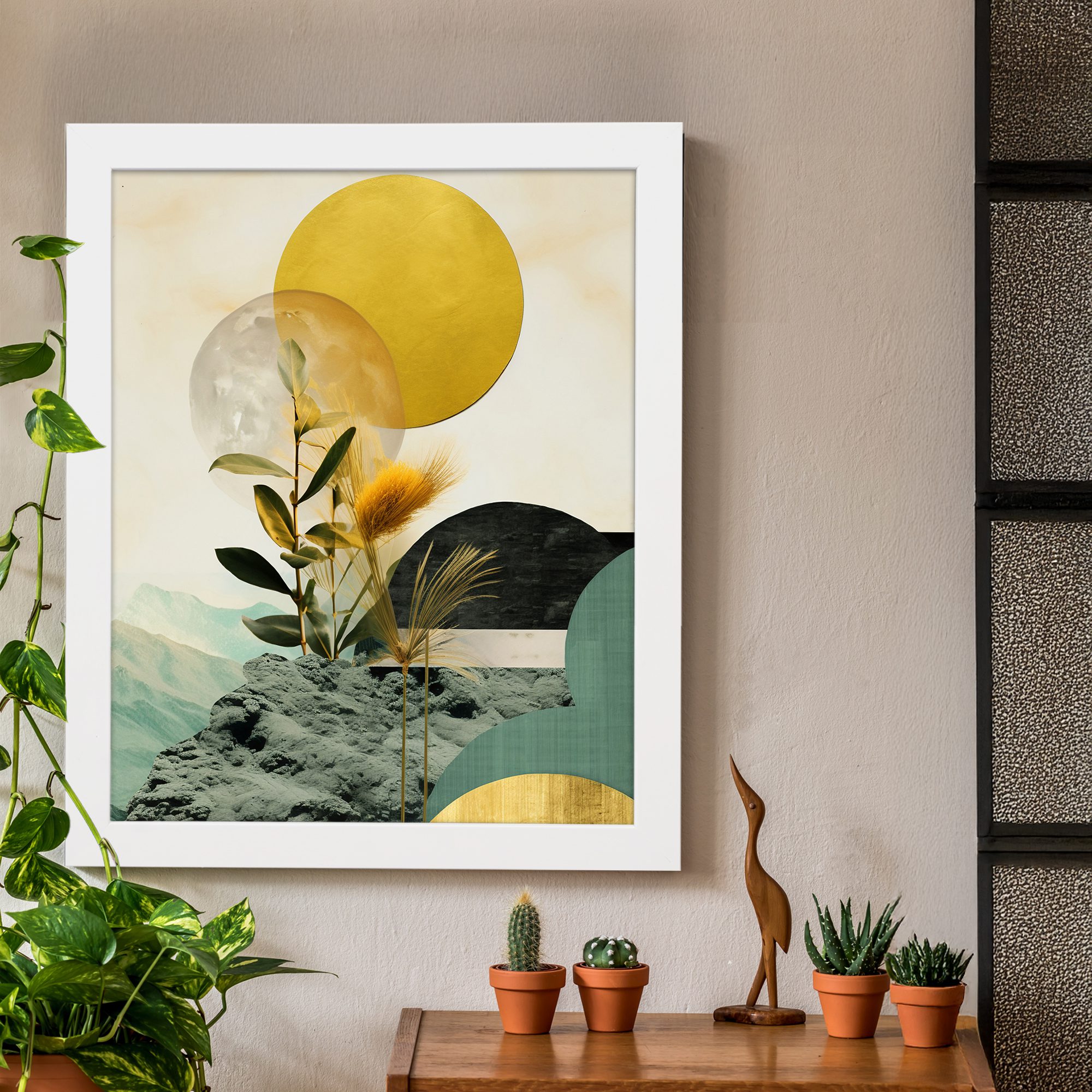 Bring a modern and artistic touch to your space with our Contemporary Wall Art. This design features a unique blend of abstract landscape elements, geometric circles, and subtle botanical details. The combination creates a balanced and visually striking composition.