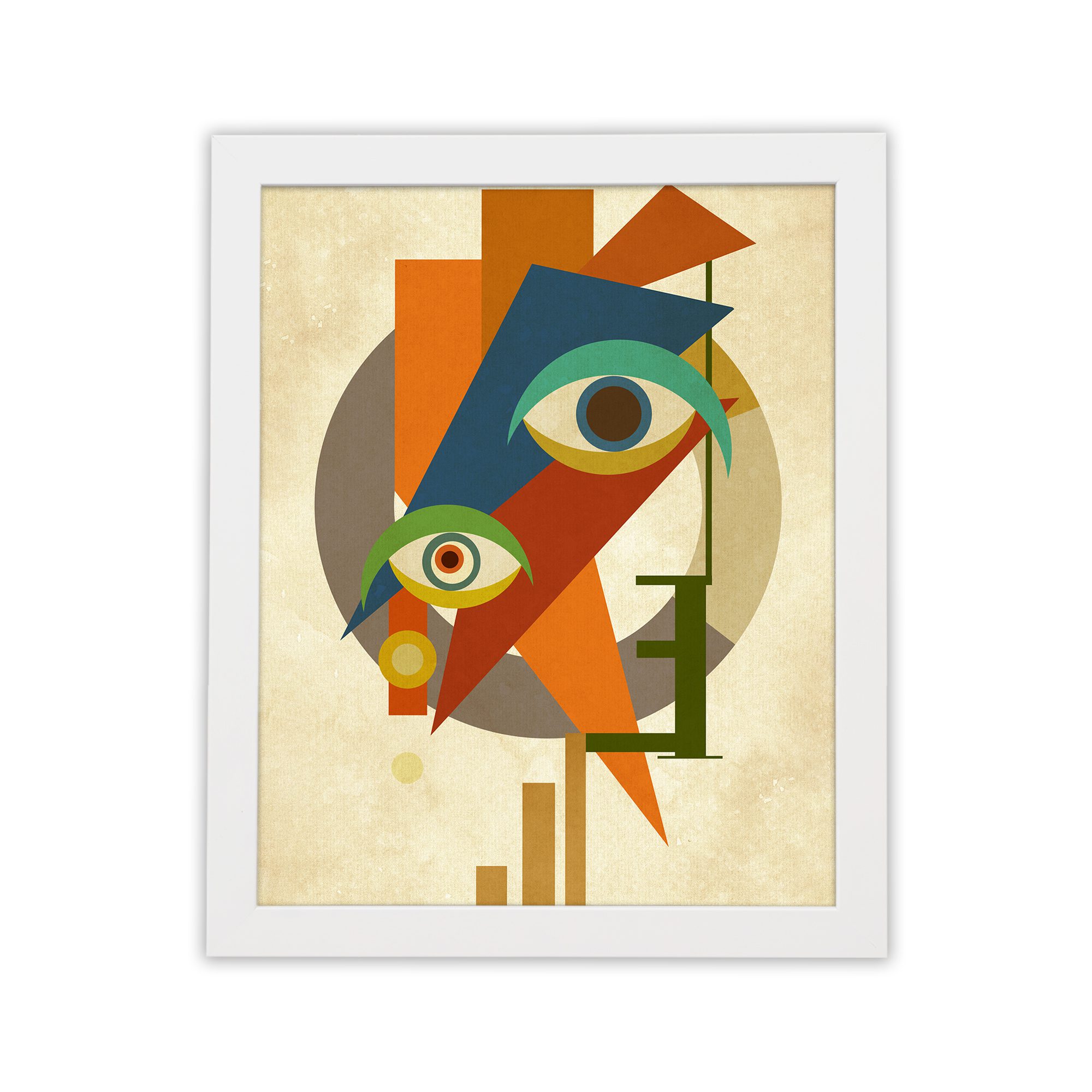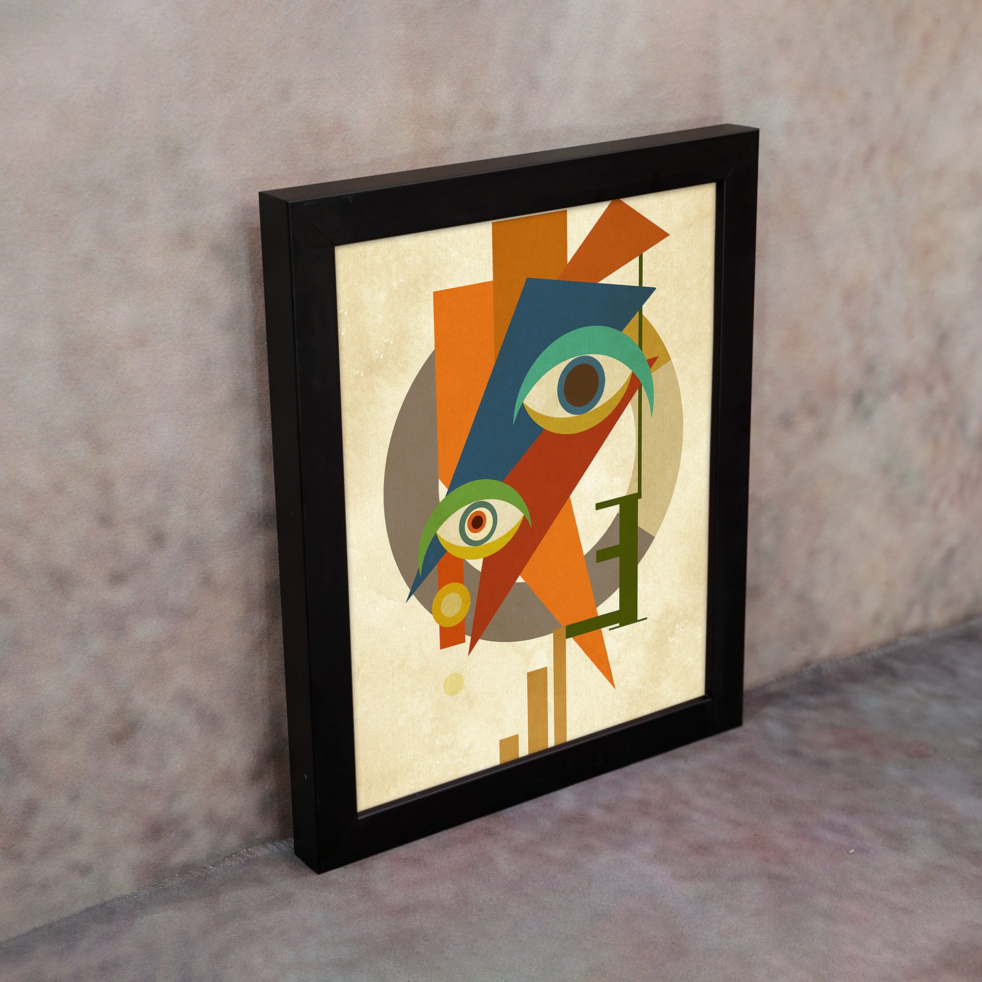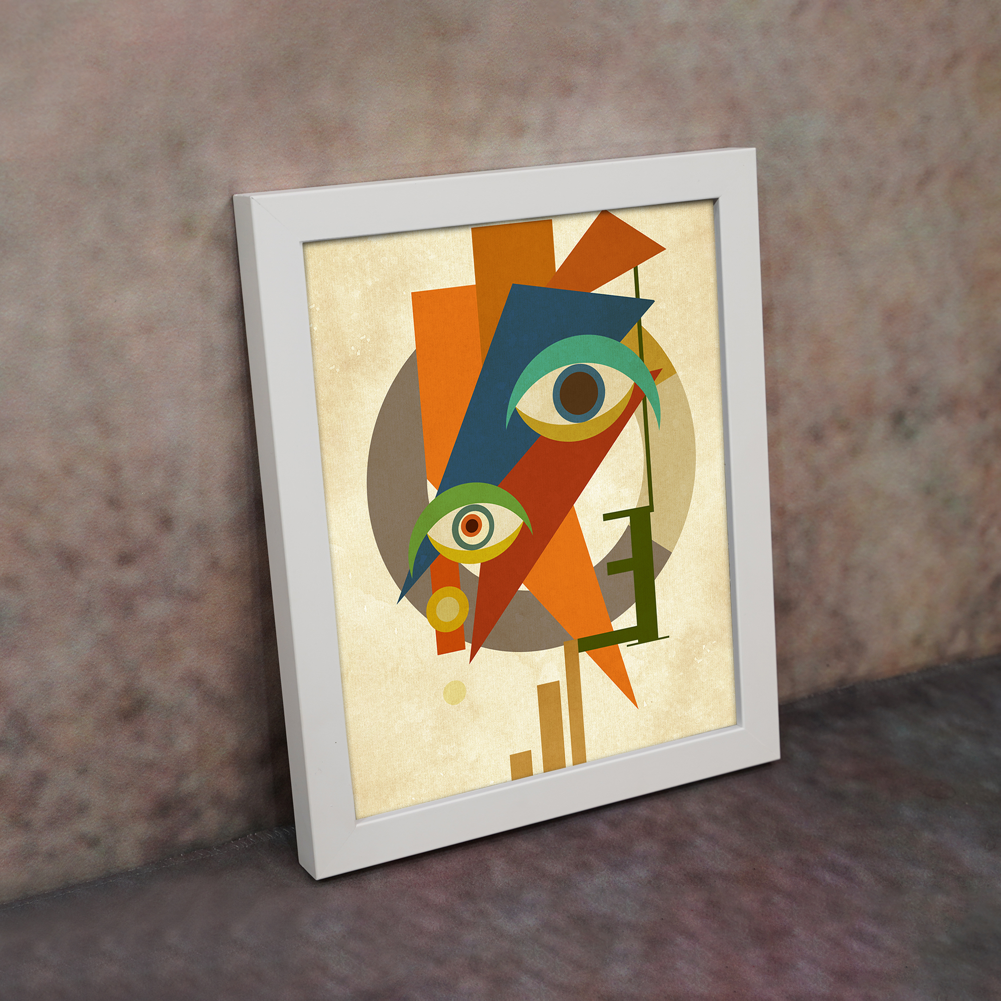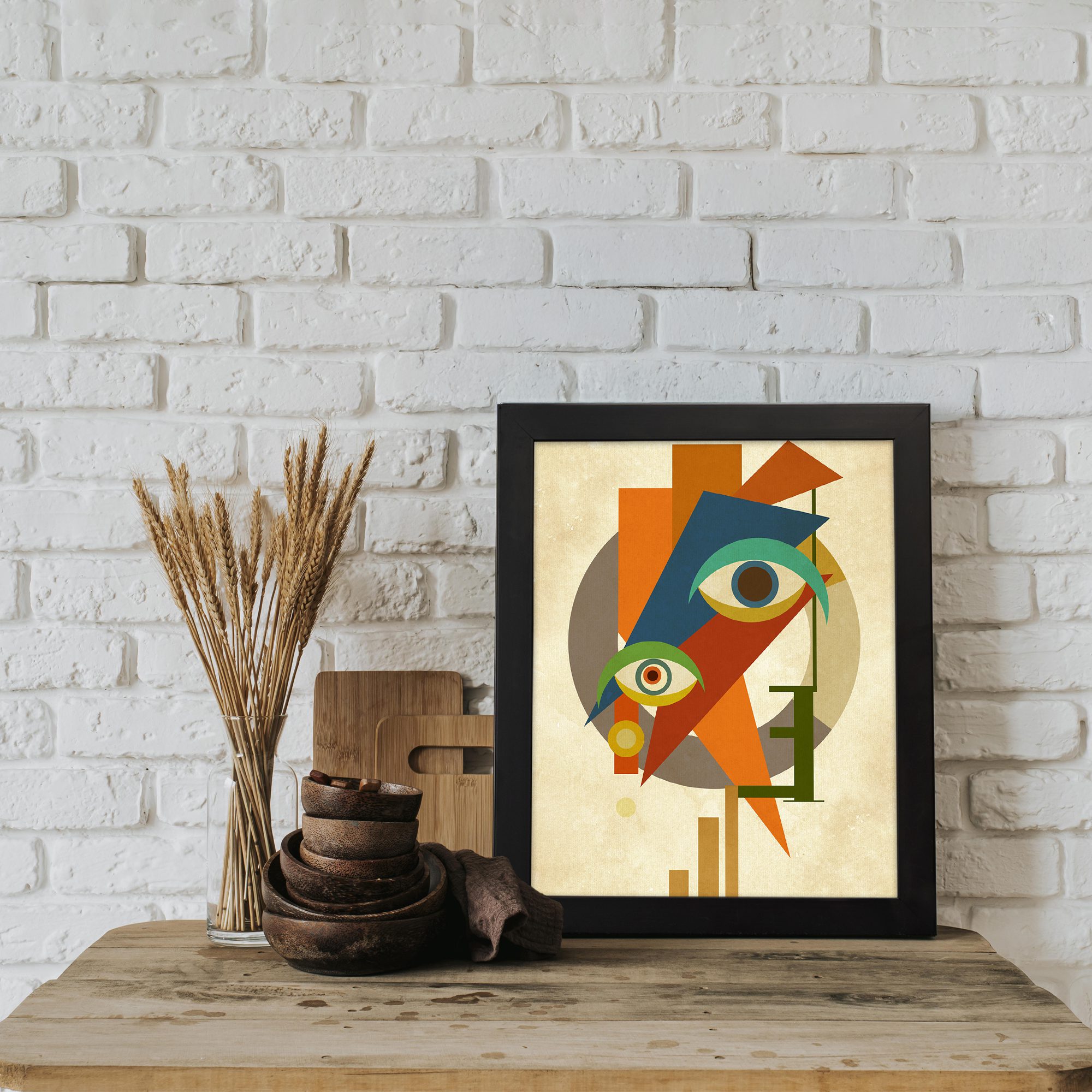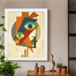 Bring a bold and artistic touch to your space with our Contemporary Wall Art. This design features an abstract face combined with multiple eye elements and geometric shapes. The composition is dynamic and visually striking, creating a strong modern statement.
