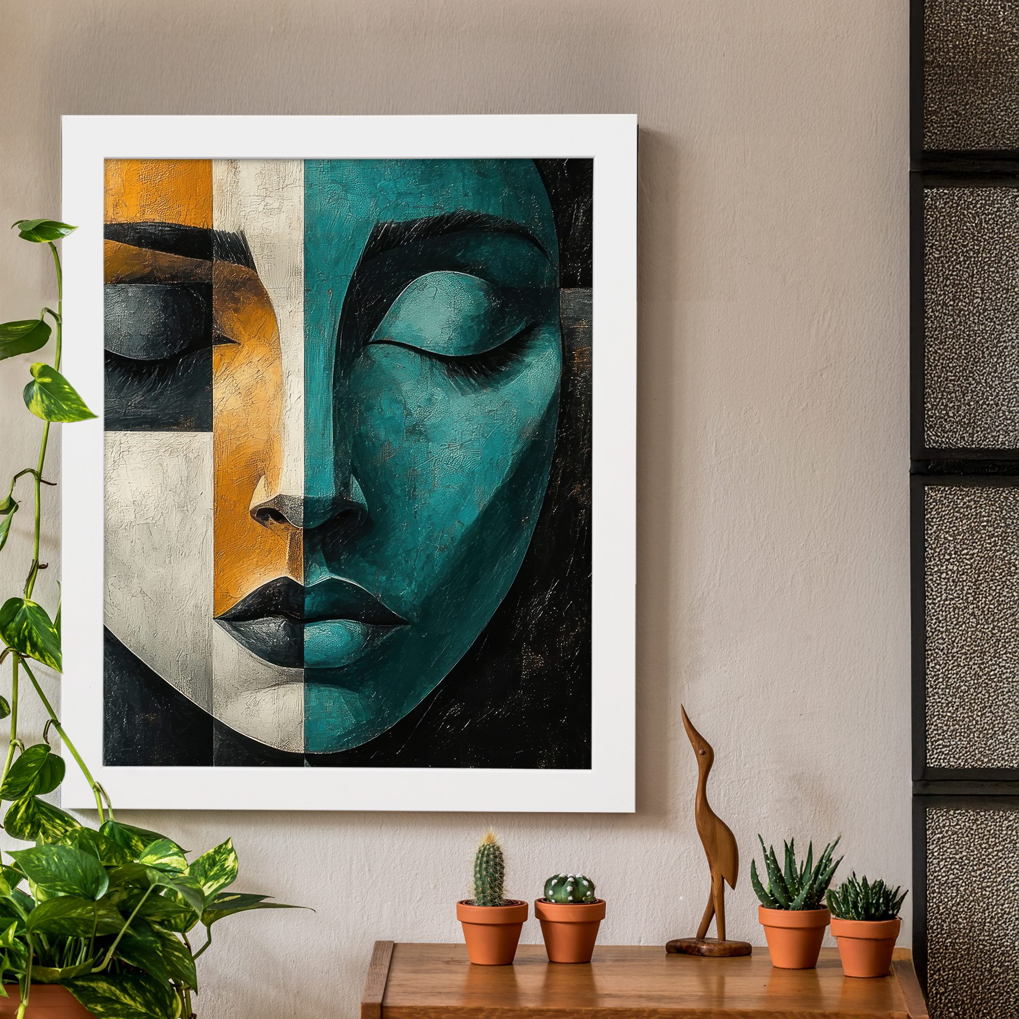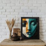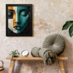 Bring a calm and artistic touch to your space with our Contemporary Wall Art. This design features an abstract face silhouette combined with botanical elements and decorative vases. The composition is enhanced with a bold circular background, creating a balanced and modern look.