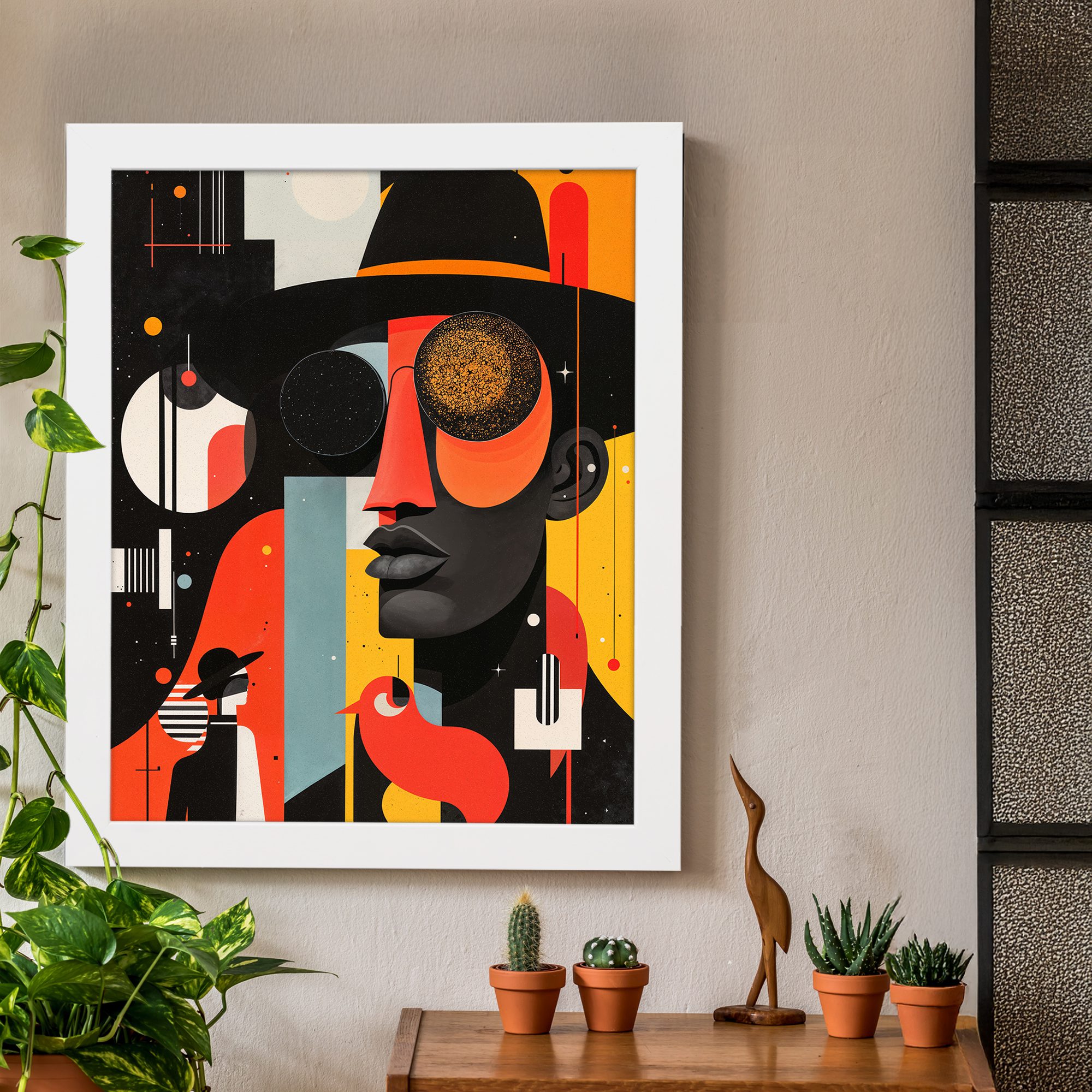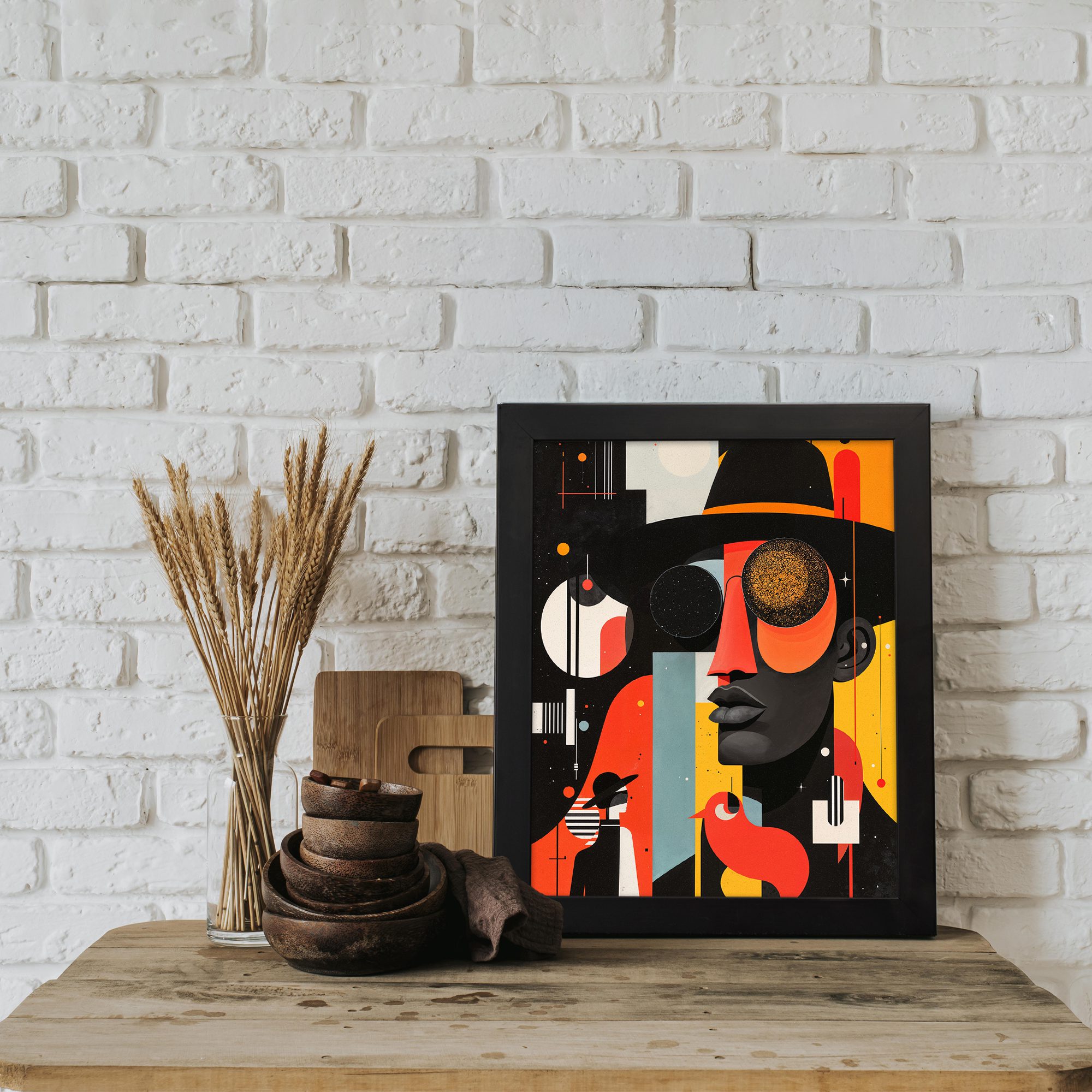 Bring a bold and modern statement to your space with our Contemporary Wall Art. This design features an abstract face combined with geometric shapes and structured lines. The strong use of red, orange, black, and neutral tones creates a powerful and eye-catching composition.