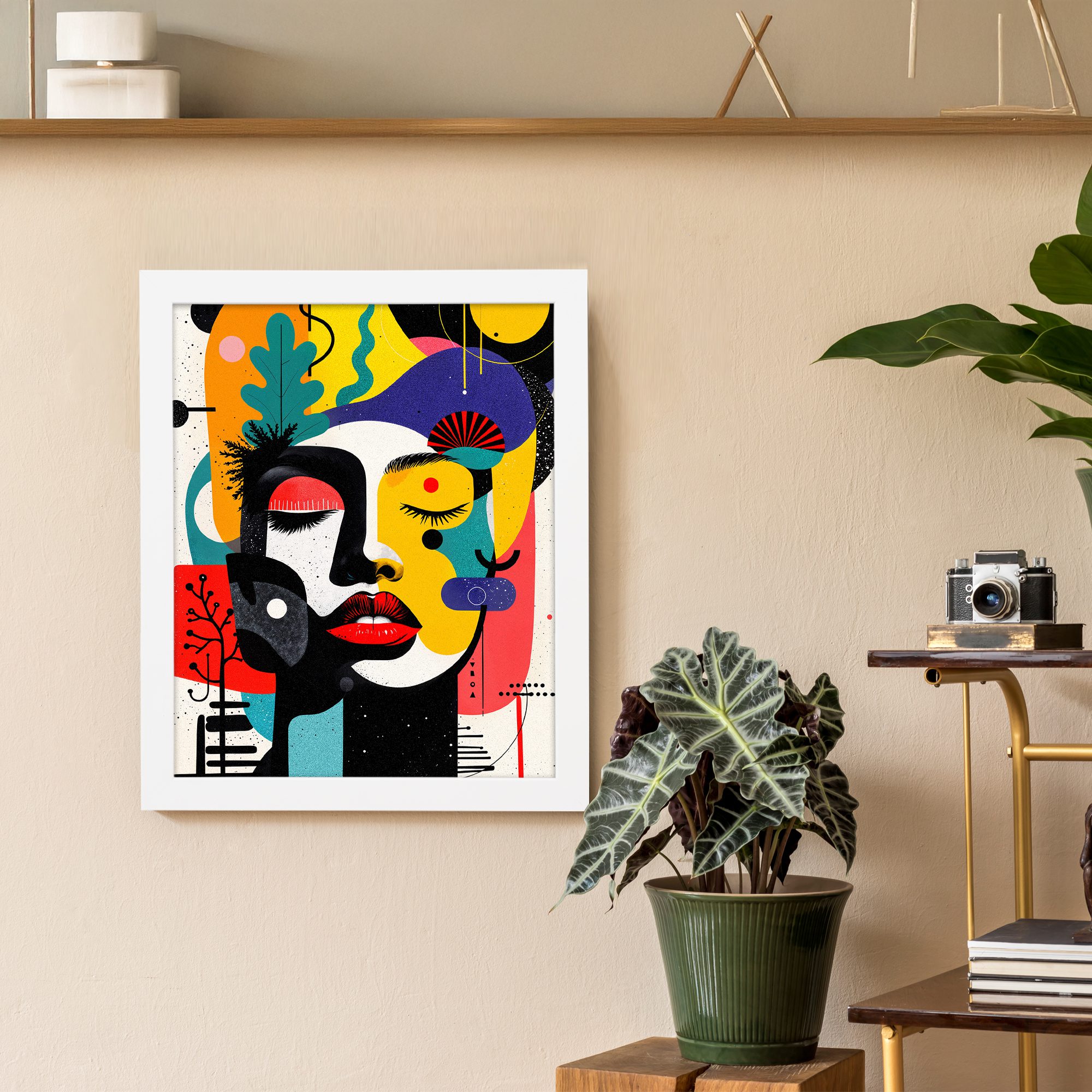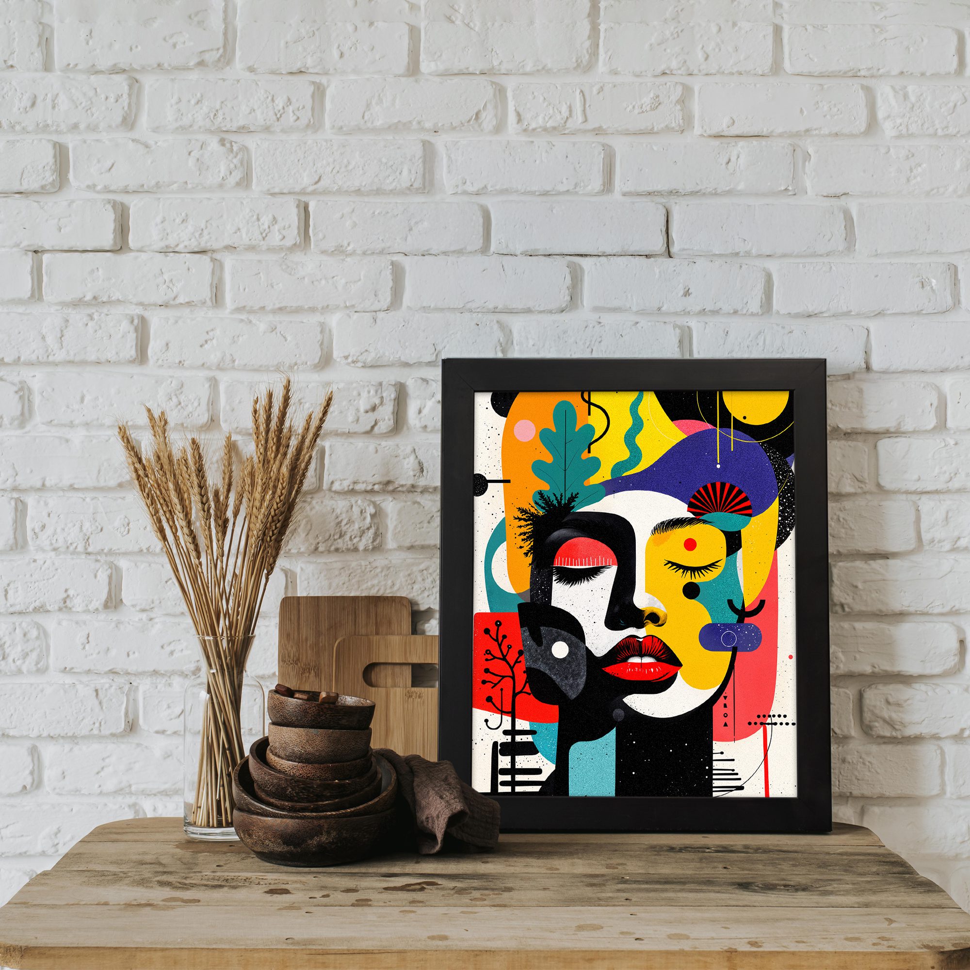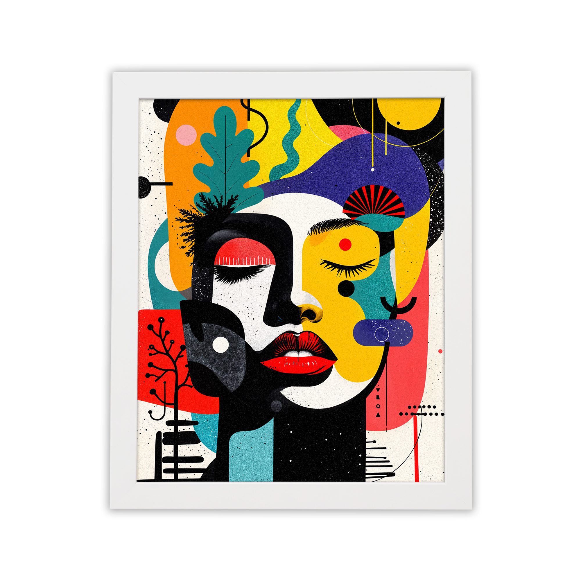 Bring a bold and vibrant touch to your space with our Contemporary Wall Art. This design features a colorful abstract face combined with playful shapes, organic elements, and artistic patterns. The composition is lively and visually striking.