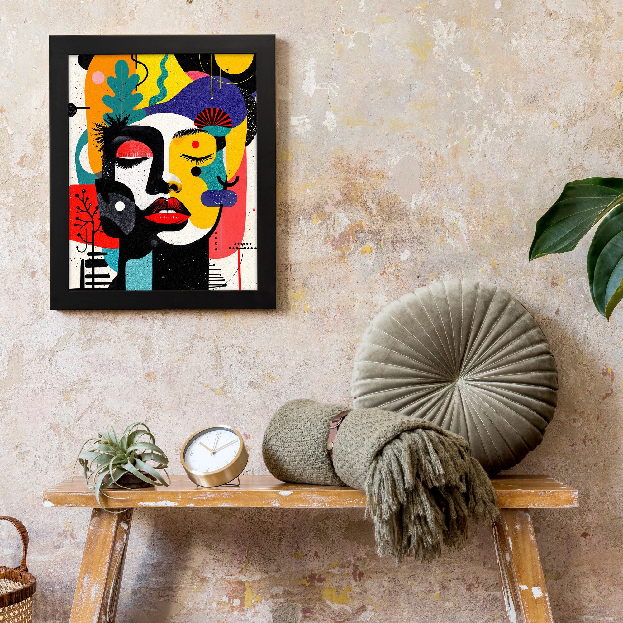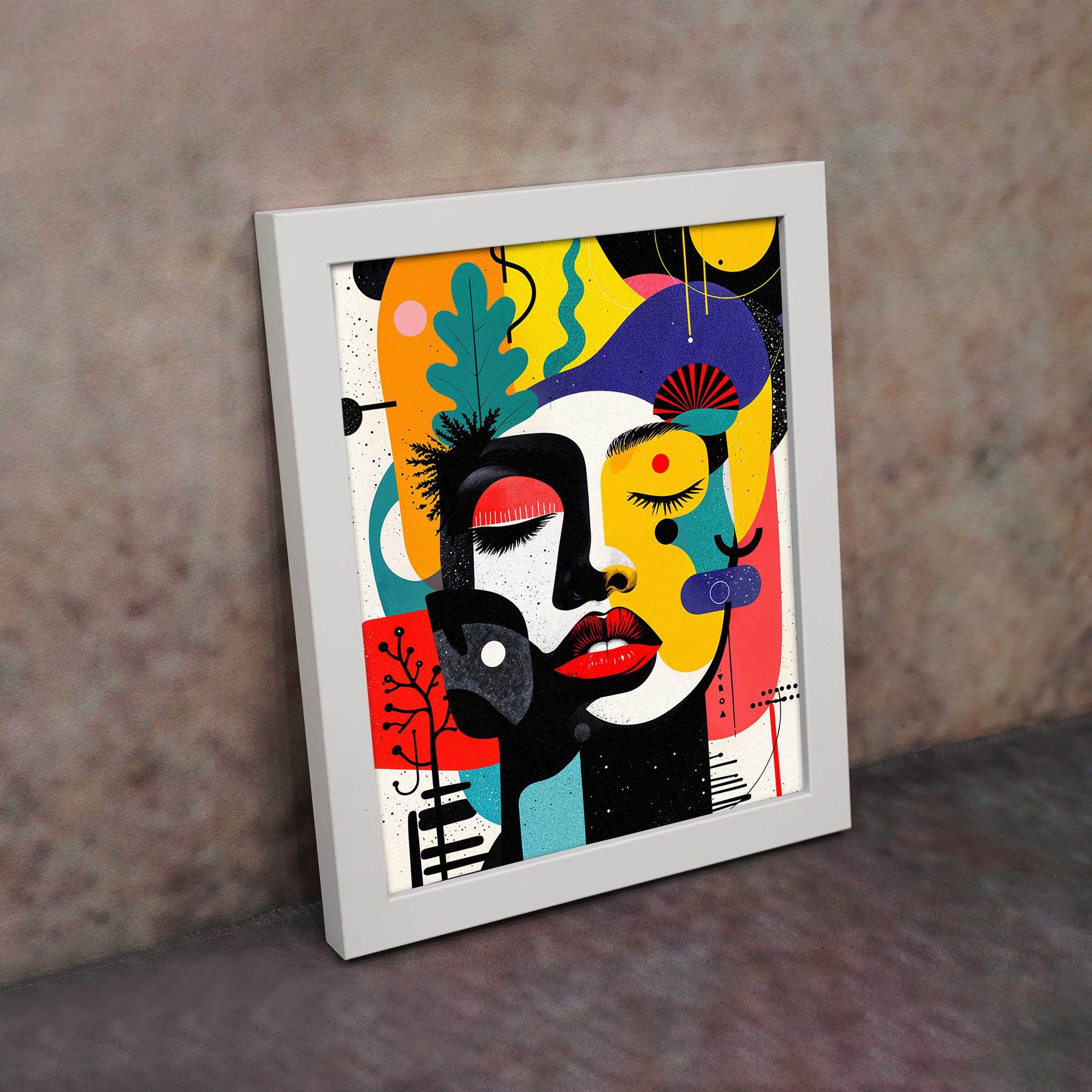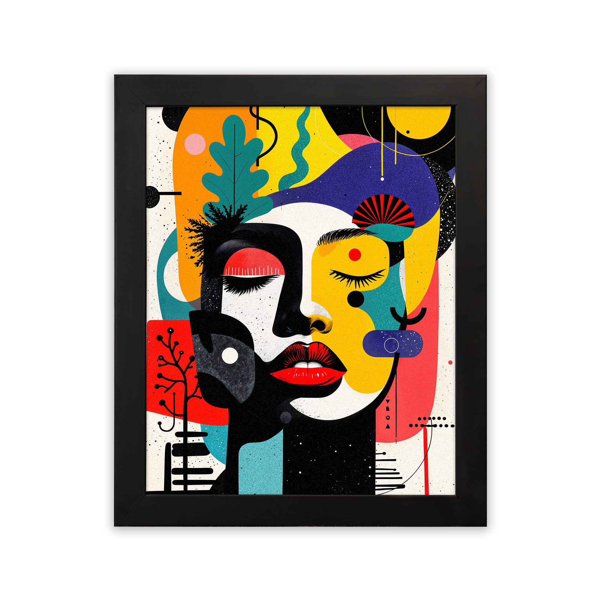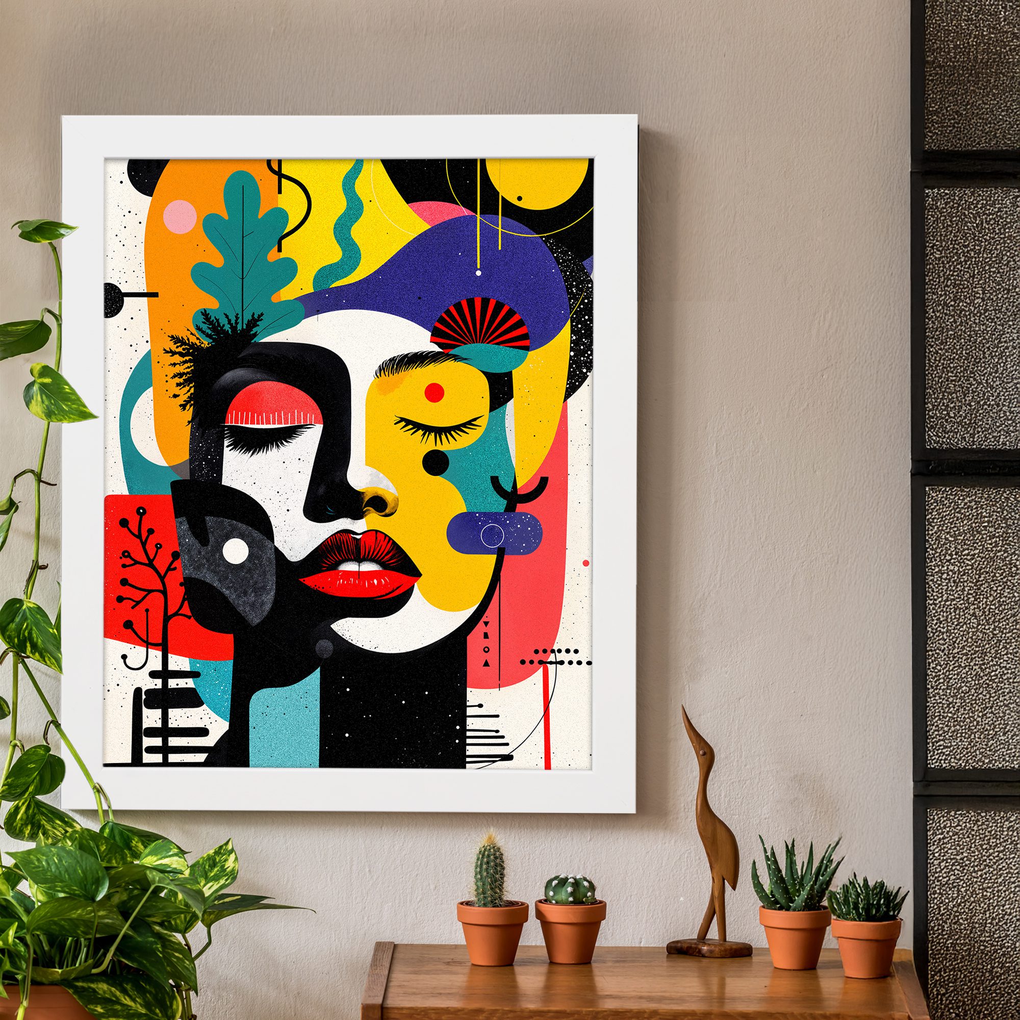 Bring a bold and vibrant touch to your space with our Contemporary Wall Art. This design features a colorful abstract face combined with playful shapes, organic elements, and artistic patterns. The composition is lively and visually striking.