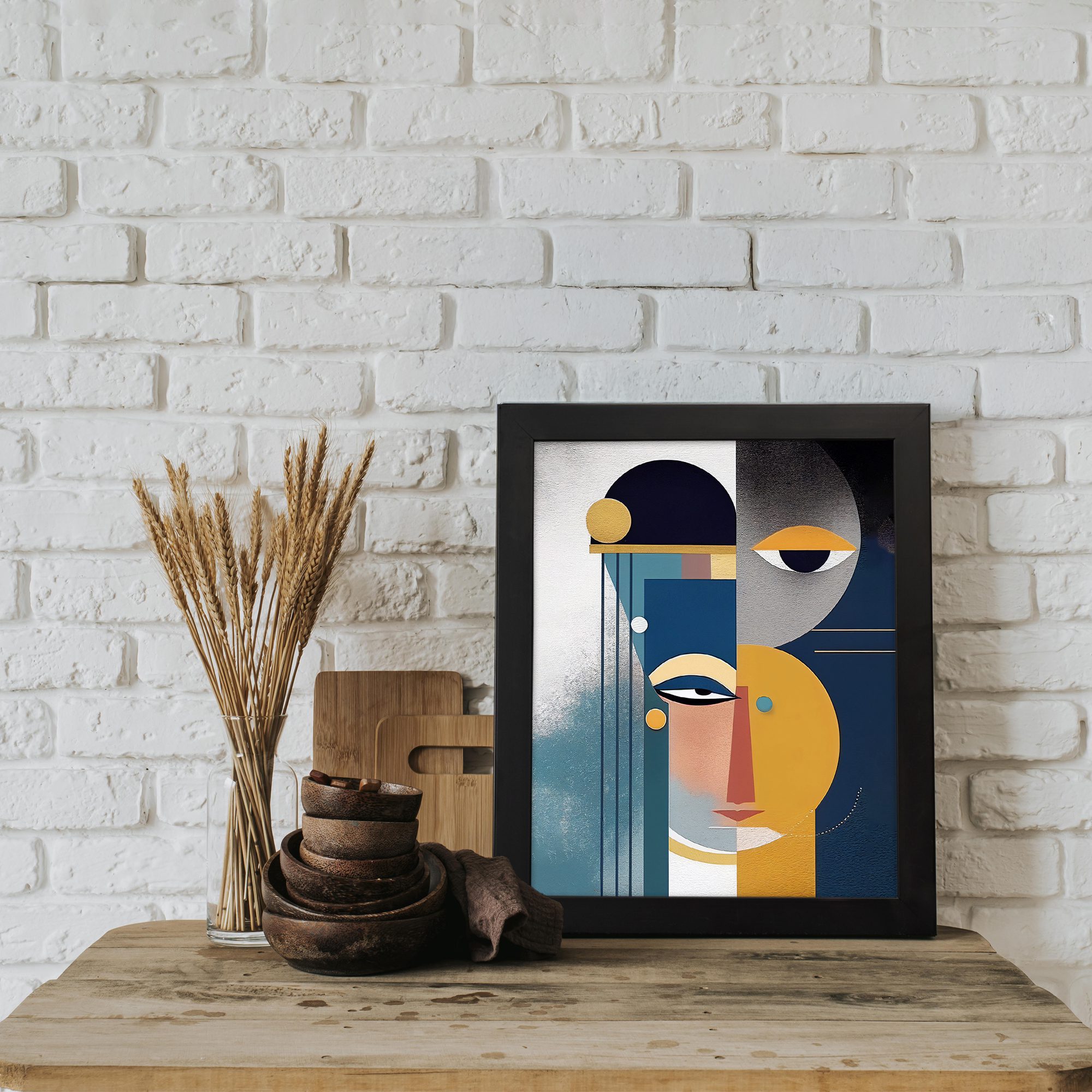 Bring a stylish and modern touch to your space with our Contemporary Wall Art. This design features an abstract face created with geometric shapes and clean lines. The composition is balanced with circular elements and structured blocks, giving it a refined and artistic look.